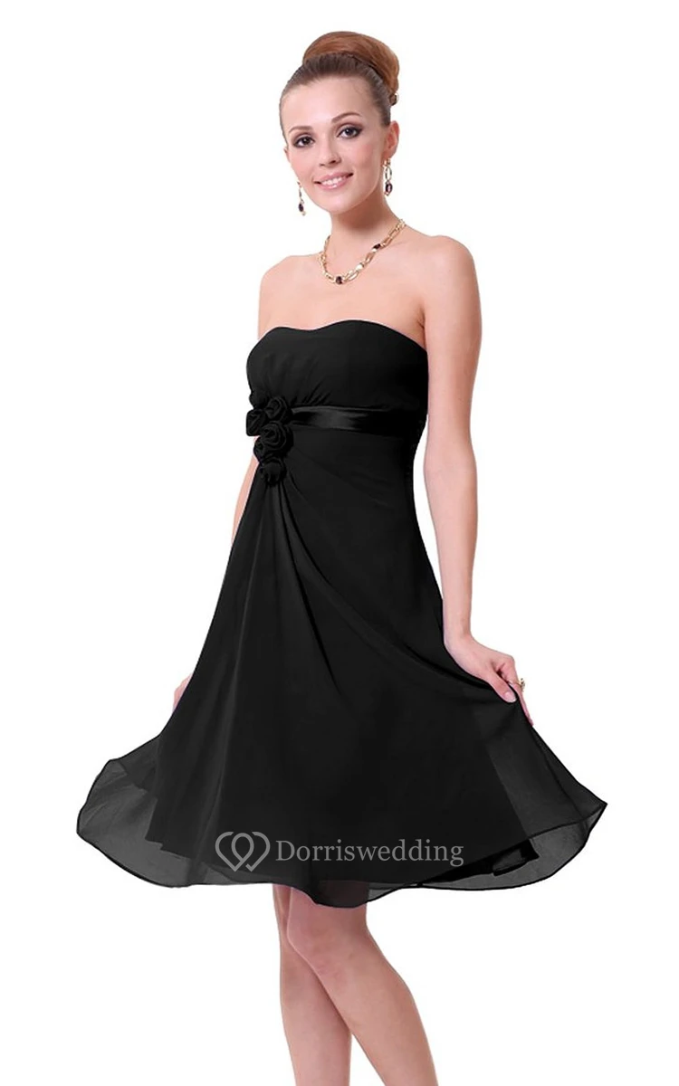 Strapless A-line Wedding Dress With Satin Belt and Flowers