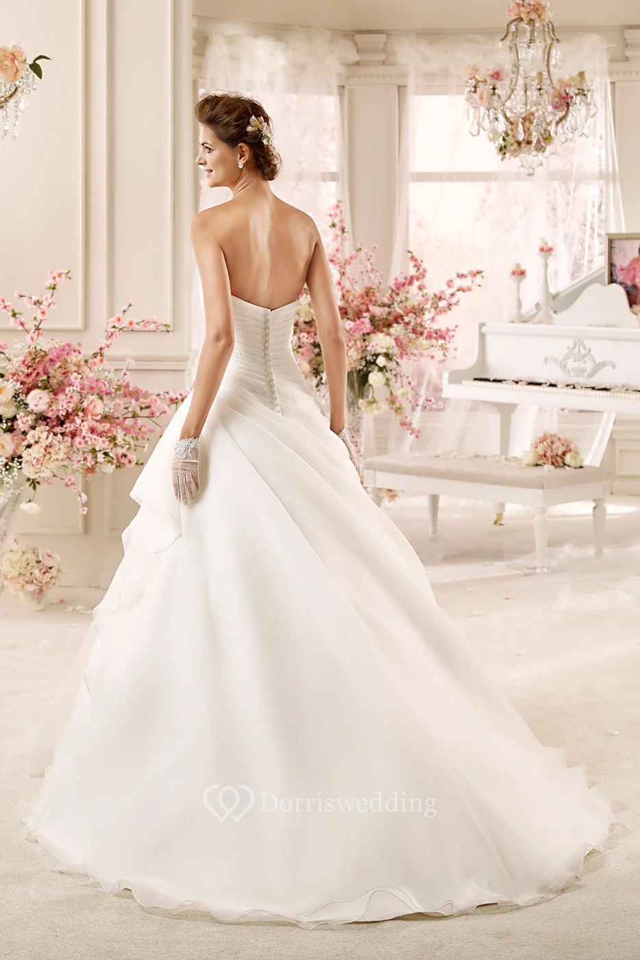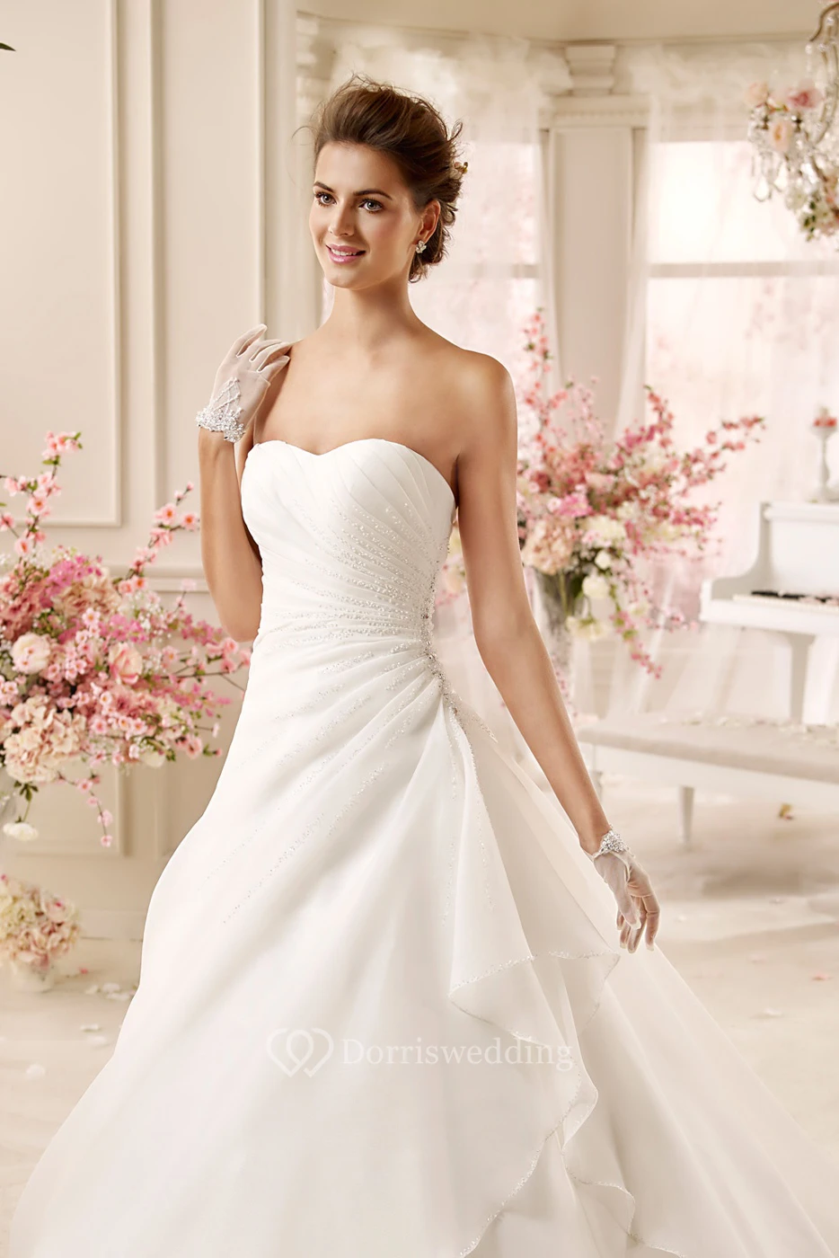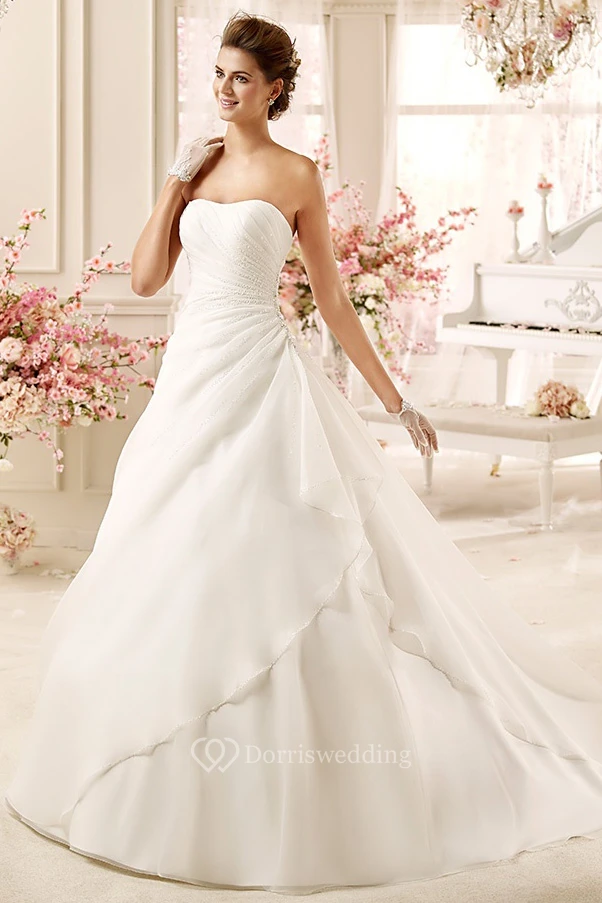 Strapless A-line Wedding Dress with Side Draping and Brush Train