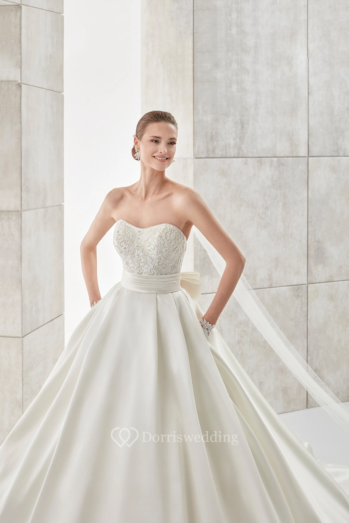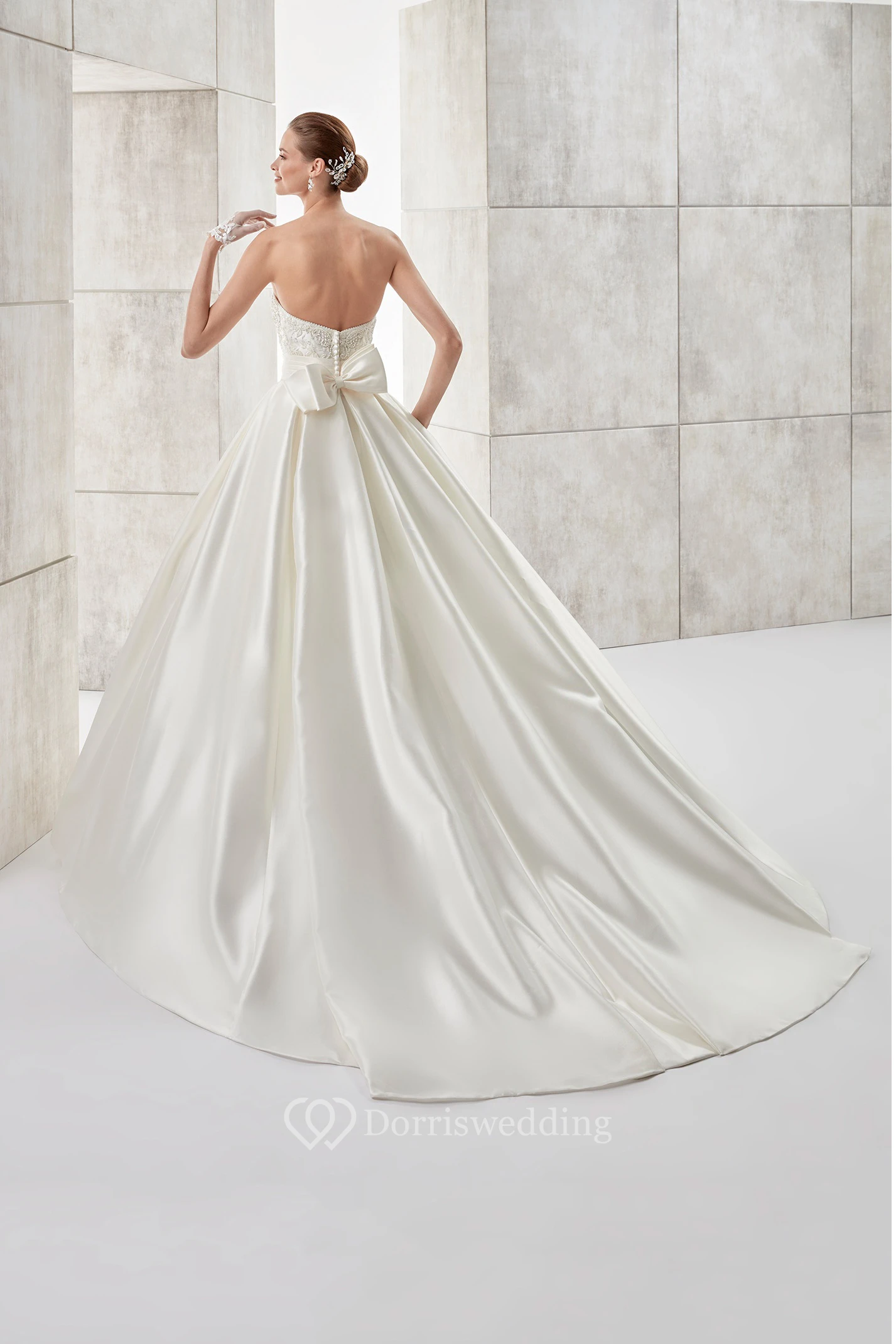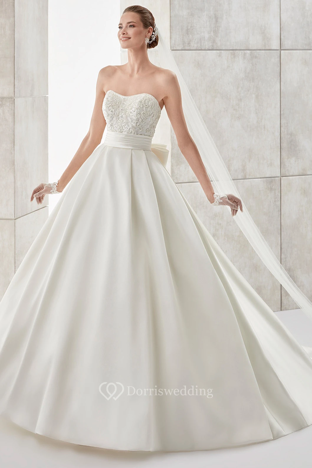 Strapless A-line Wedding gown with Cinched Waistband and Back Bow