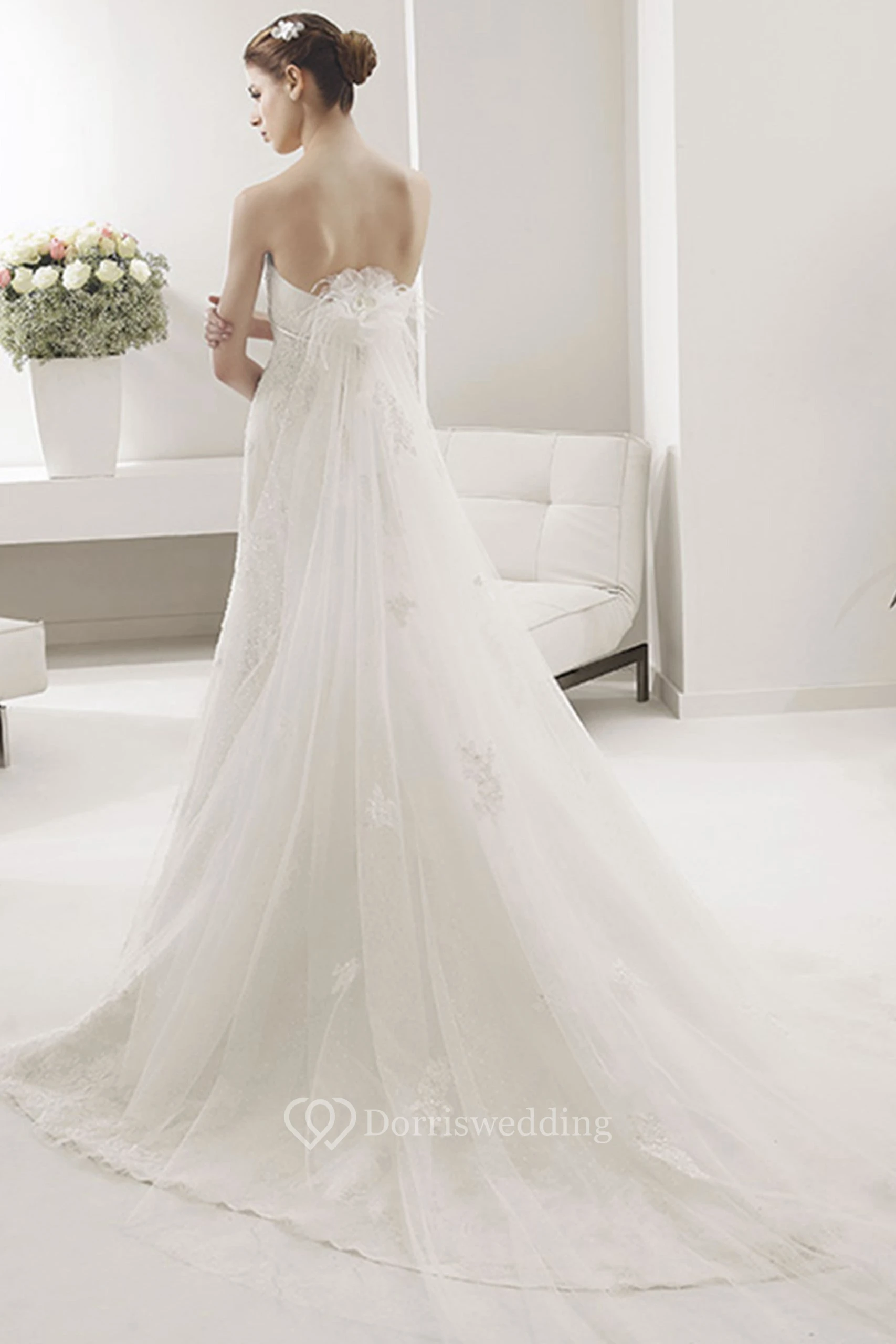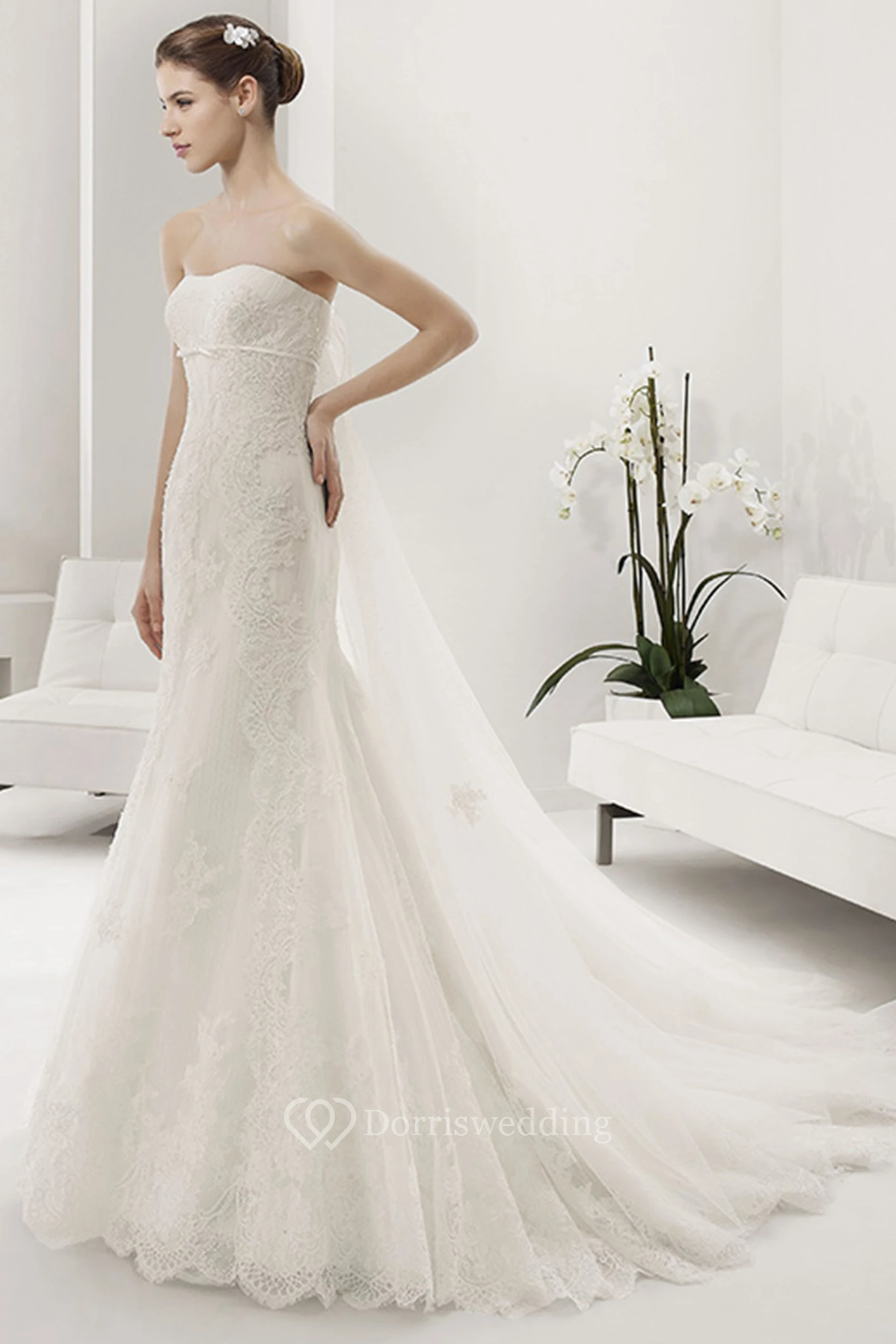 Strapless Allover Lace Sheath Bridal Gown With Sash