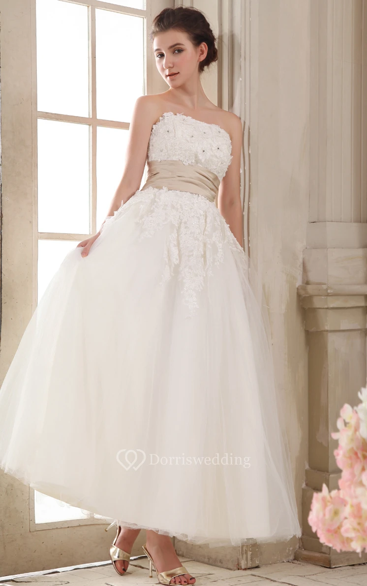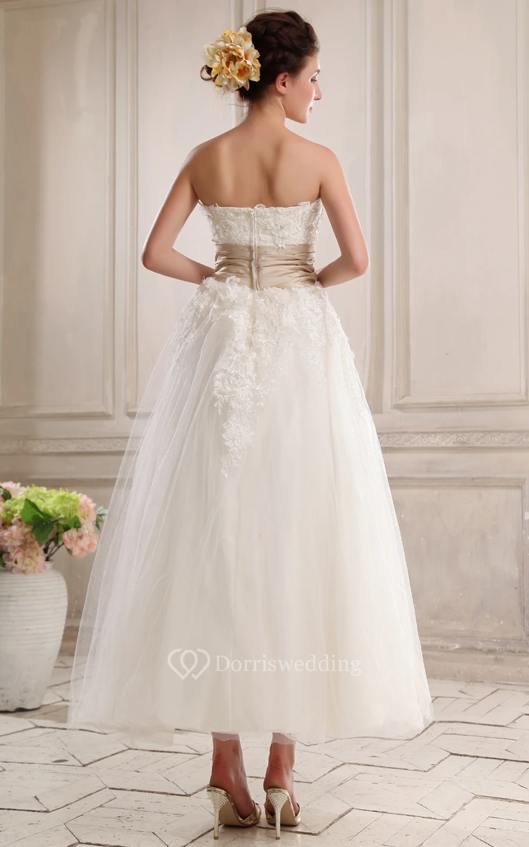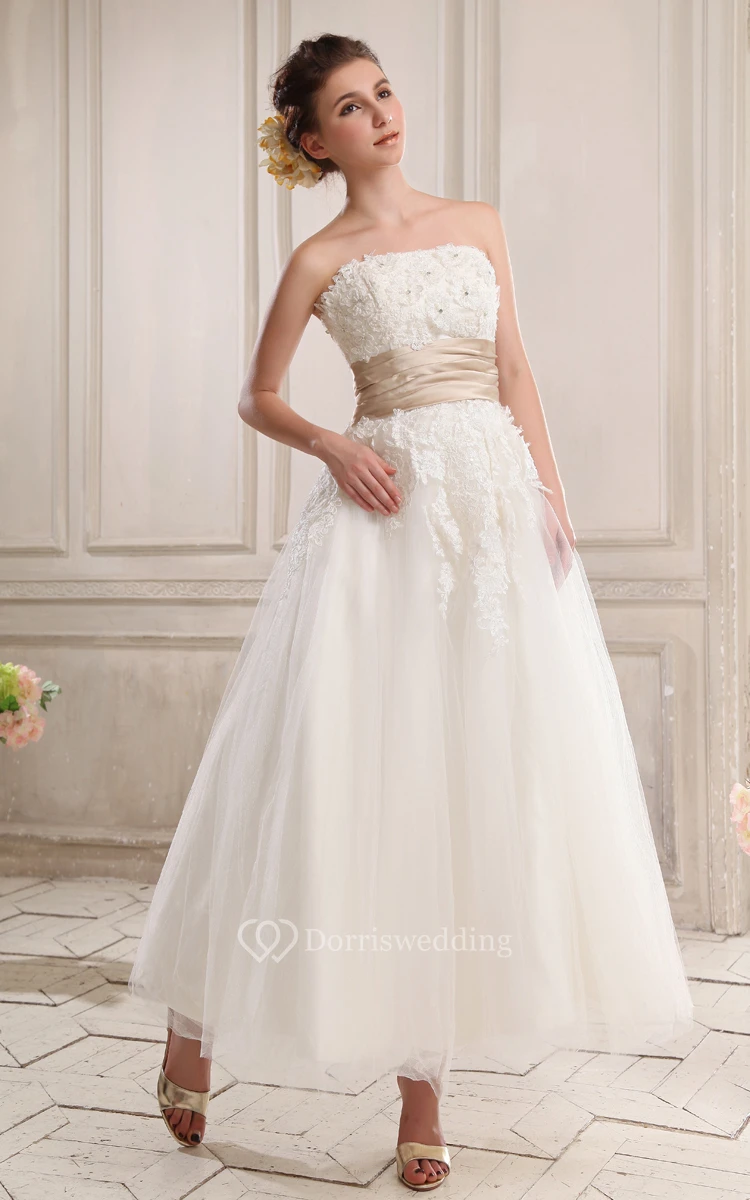 Strapless Ankle-Length Dress With Appliques and Zipper-Back