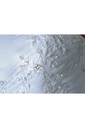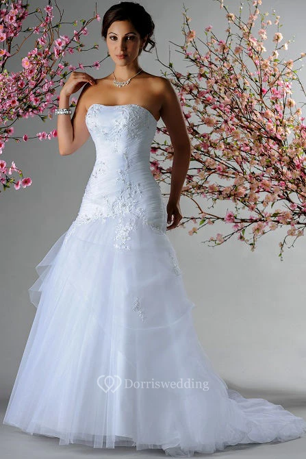 Strapless Applique Pearl Top Bridal Gown With Layered Tulle Skirt