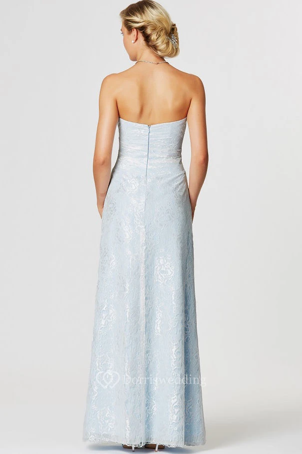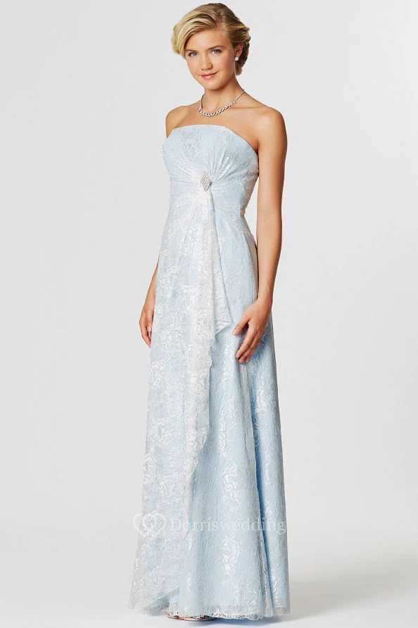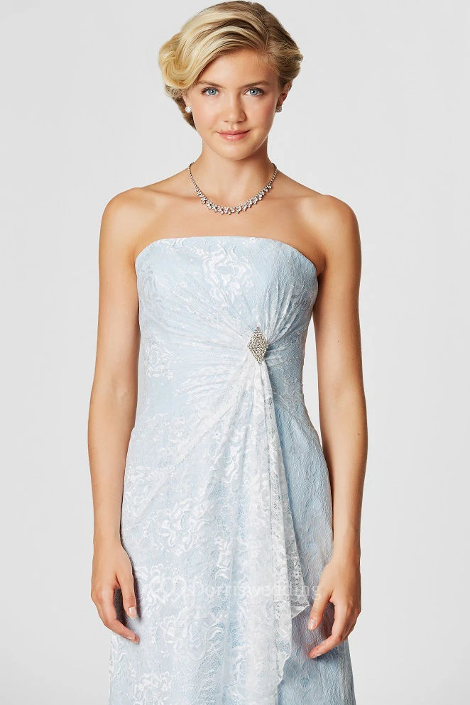 Strapless Appliqued Lace Bridesmaid Dress With Draping And Broach