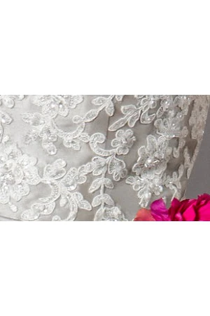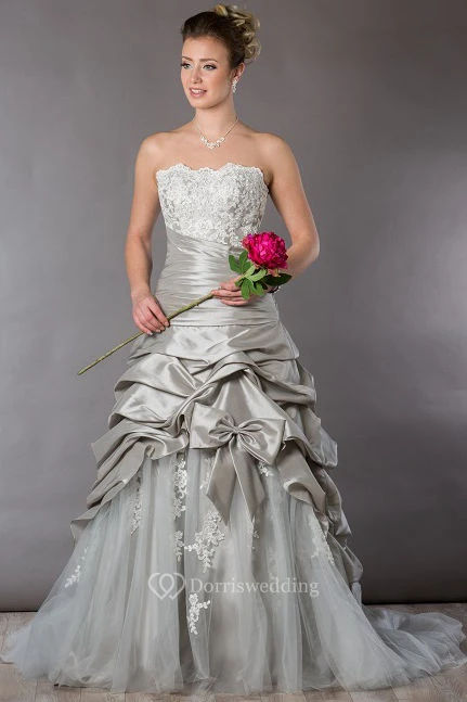Strapless Appliqued Top Tulle Bridal Gown With Taffeta Ruffles And Bow