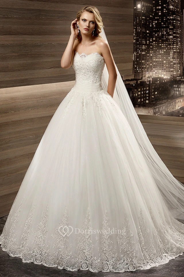 Strapless Appliques A-Line Bridal Elegance Gown With Pleated Waist And Lace-Up Back