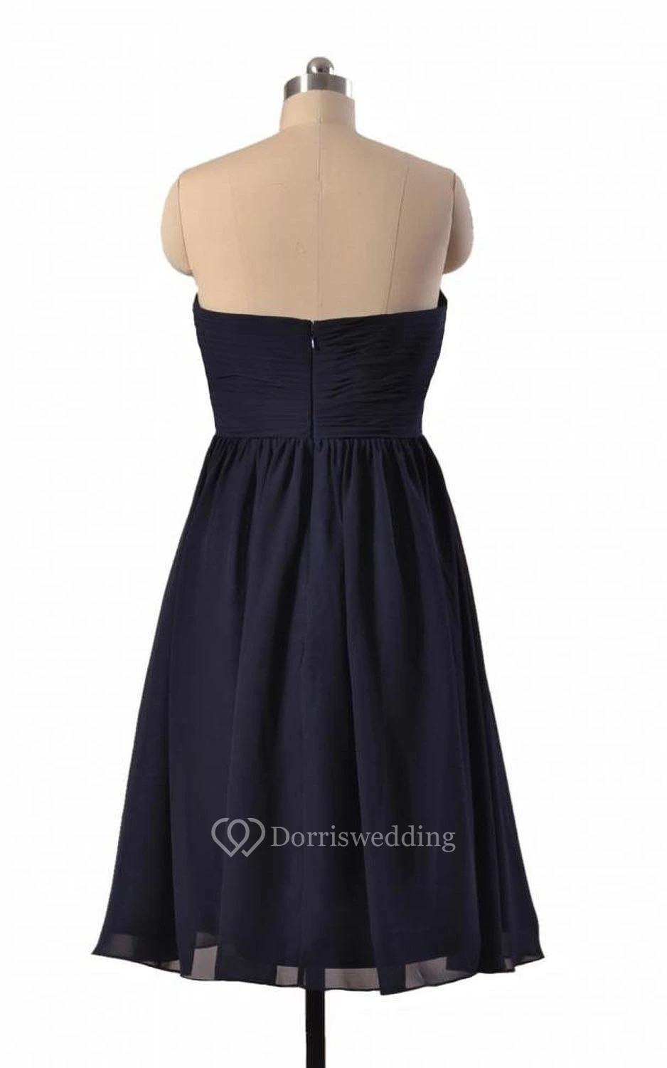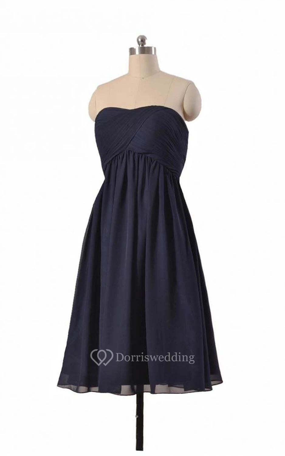 Strapless Asymmetrical Ruched Bodice Knee-length Pleated Chiffon Dress