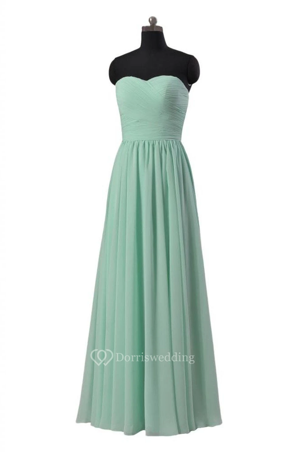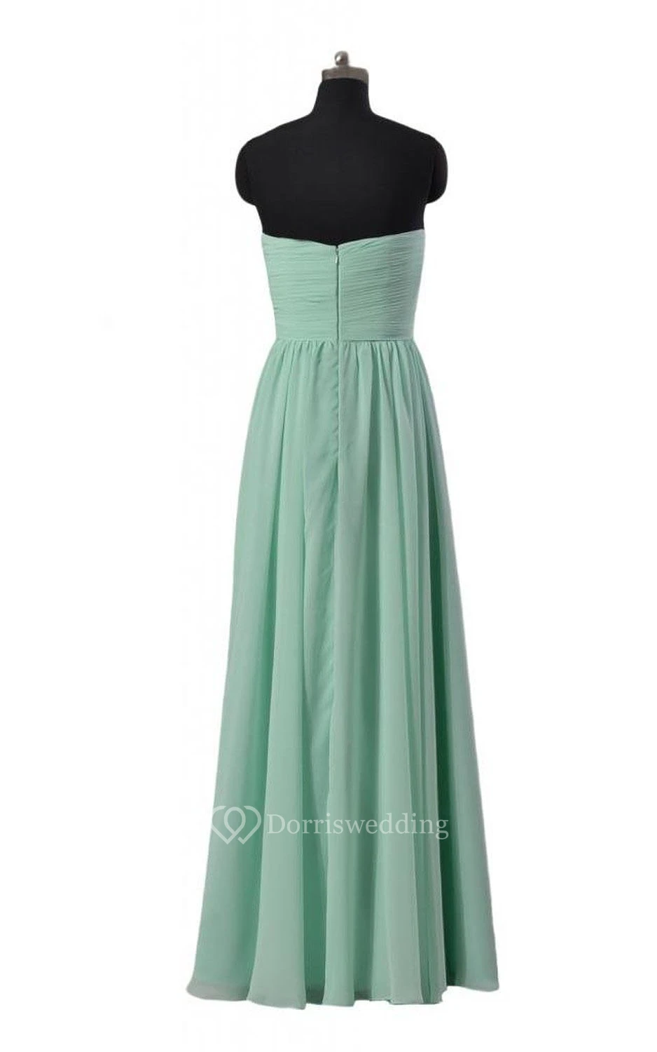 Strapless Asymmetrical Ruched Bodice Long Pleated Chiffon Dress