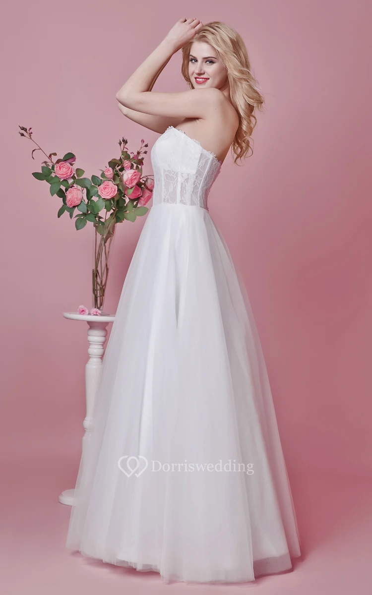 Strapless Backless A-line Lace and Tulle Gown