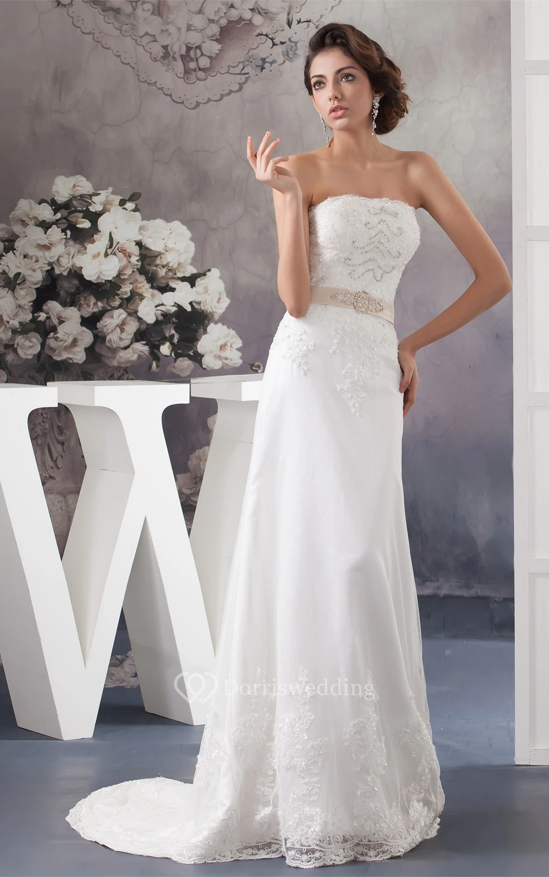 Strapless Beaded A-Line Sweep Train and Dress With Lace