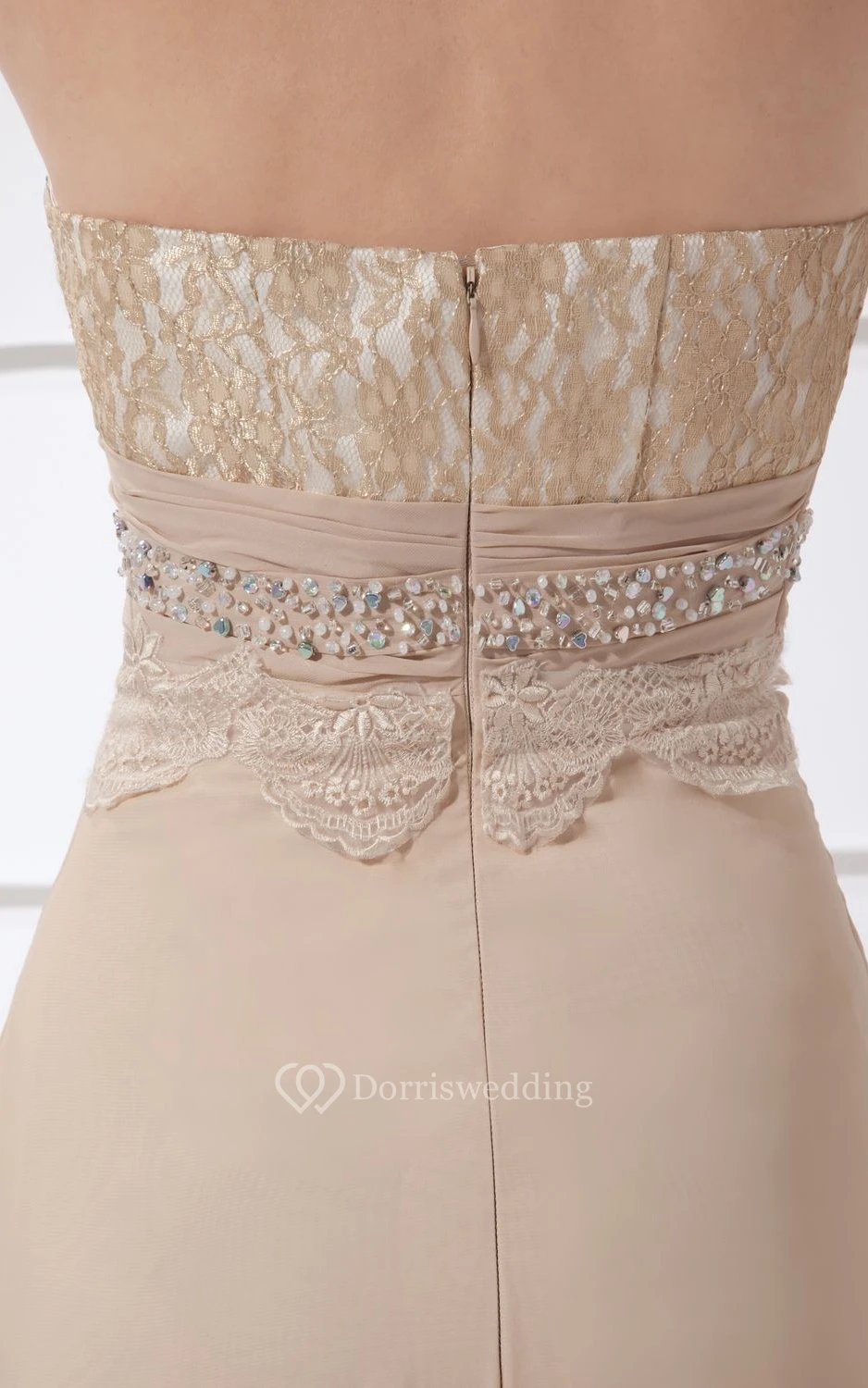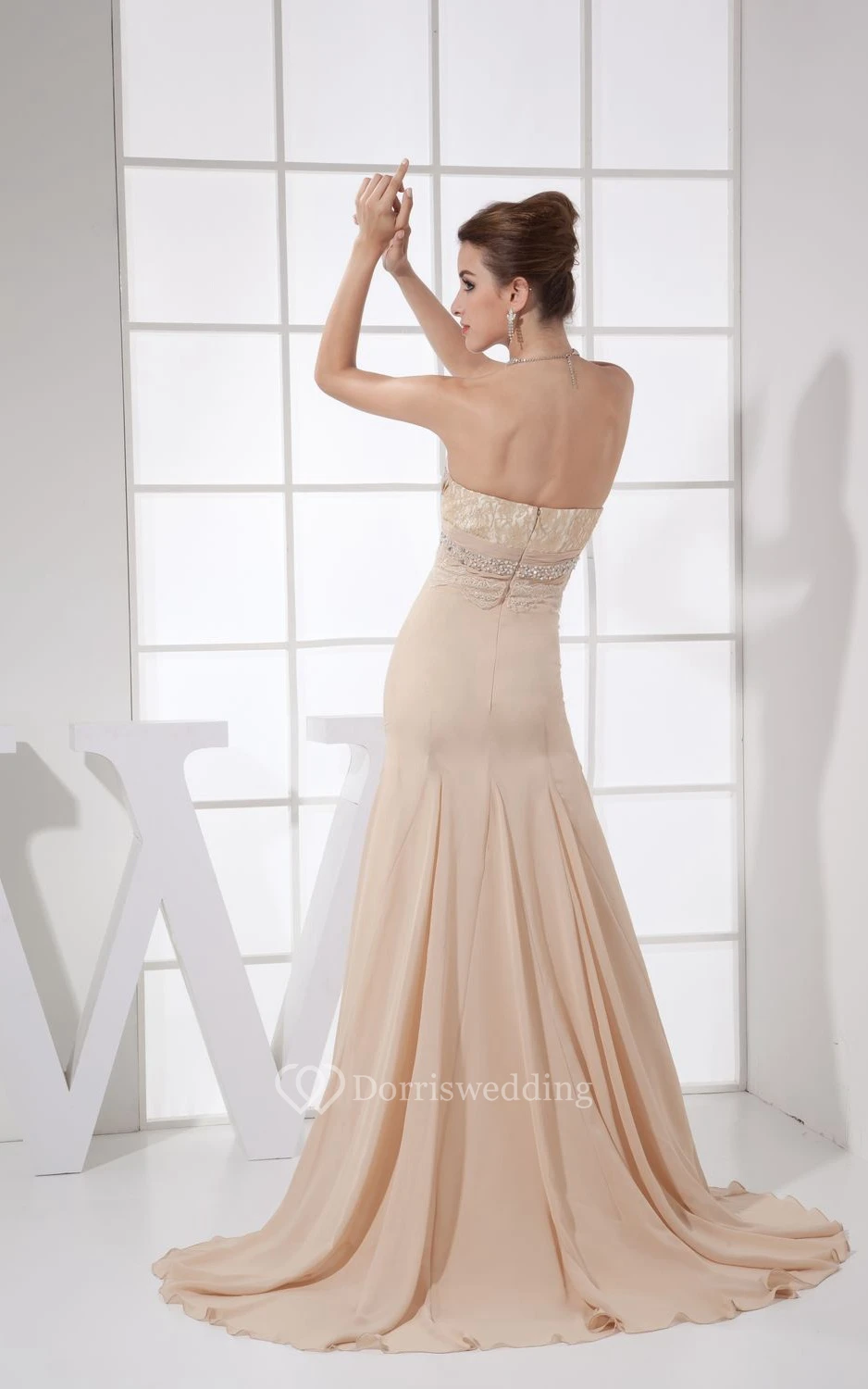 Strapless Beaded Chiffon Long Dress With Brush Train