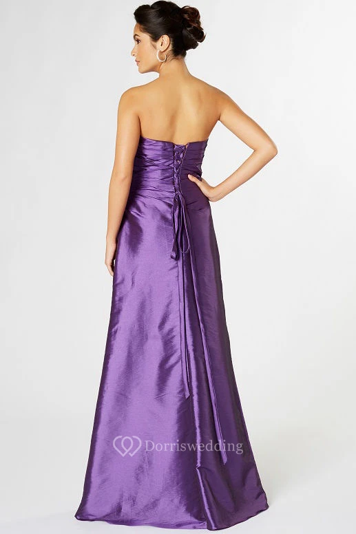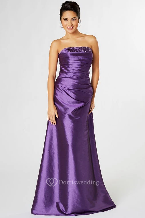 Strapless Beaded Satin Bridesmaid Dress With Ruching And Corset Back