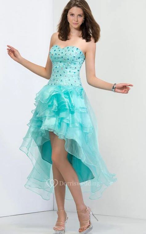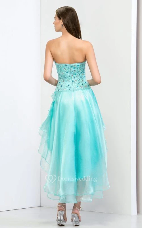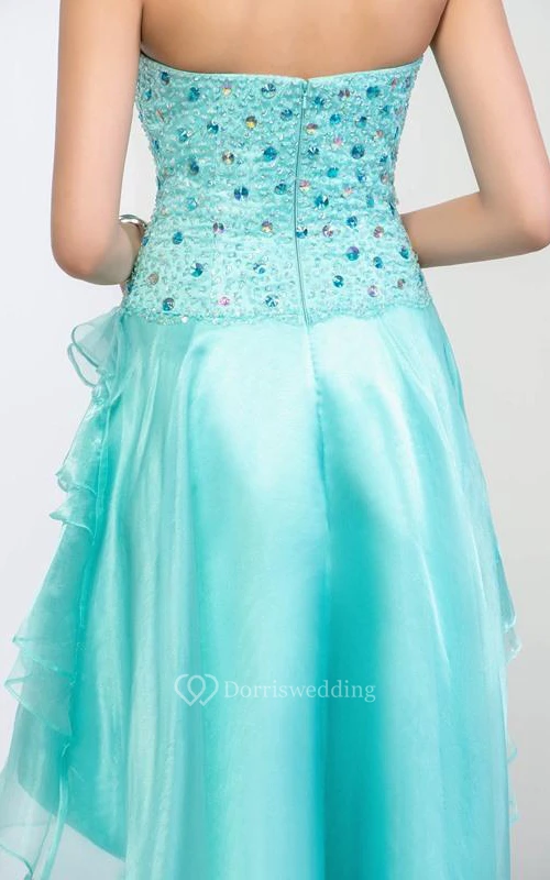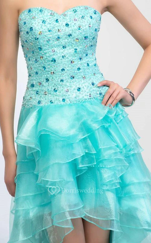 Strapless Beaded Tiered Asymmetry Prom Dress