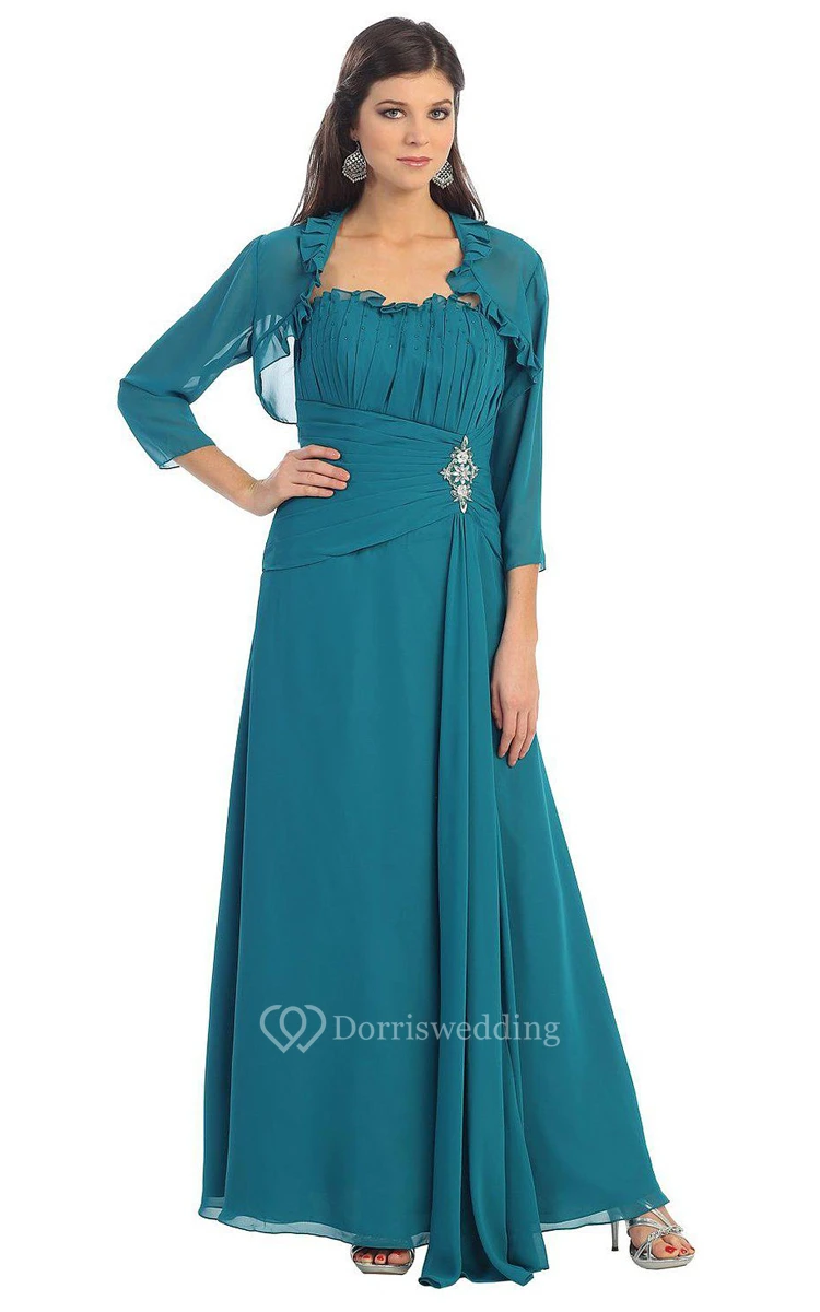 Strapless Chiffon Draped Dress With Matching Jacket