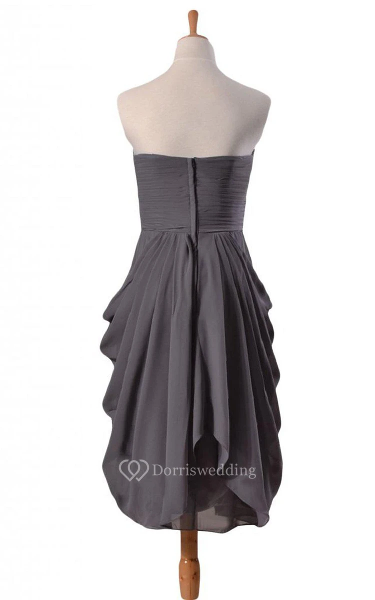 Strapless Chiffon Dress With Ruched Bodice