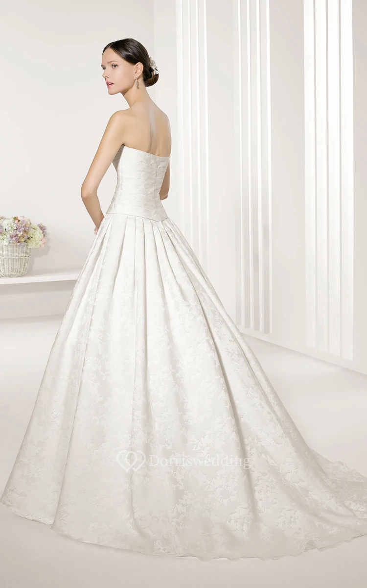 Strapless Delicate Ball Gown With Bow Sash And Pleats