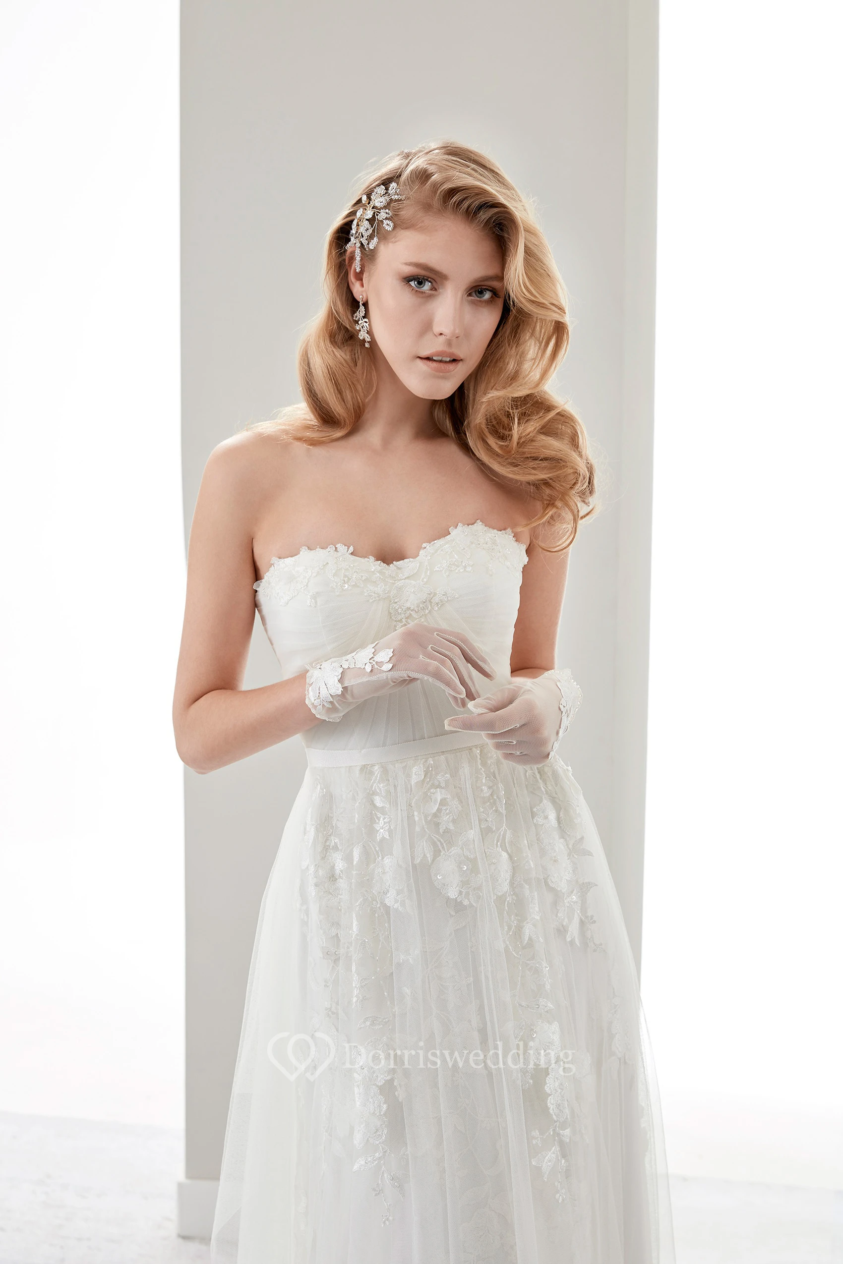 Strapless Draping Appliques Bridal Gown With Petal Bust