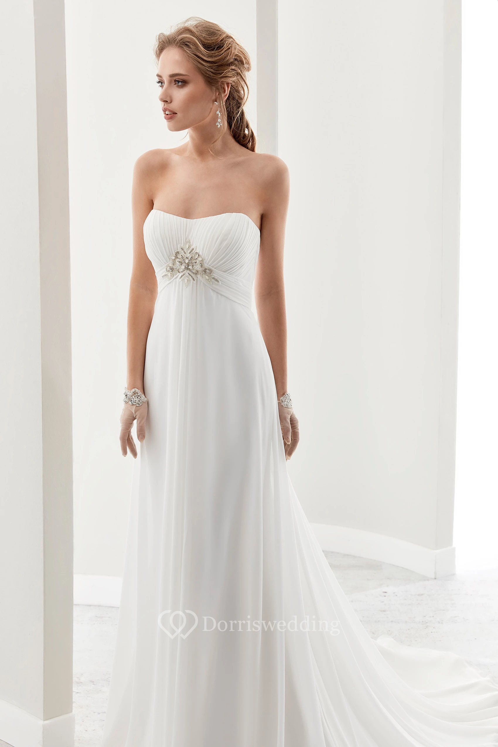 Strapless Draping Bridal Gown With Pleated Bust And Invert-V Beaded Waist