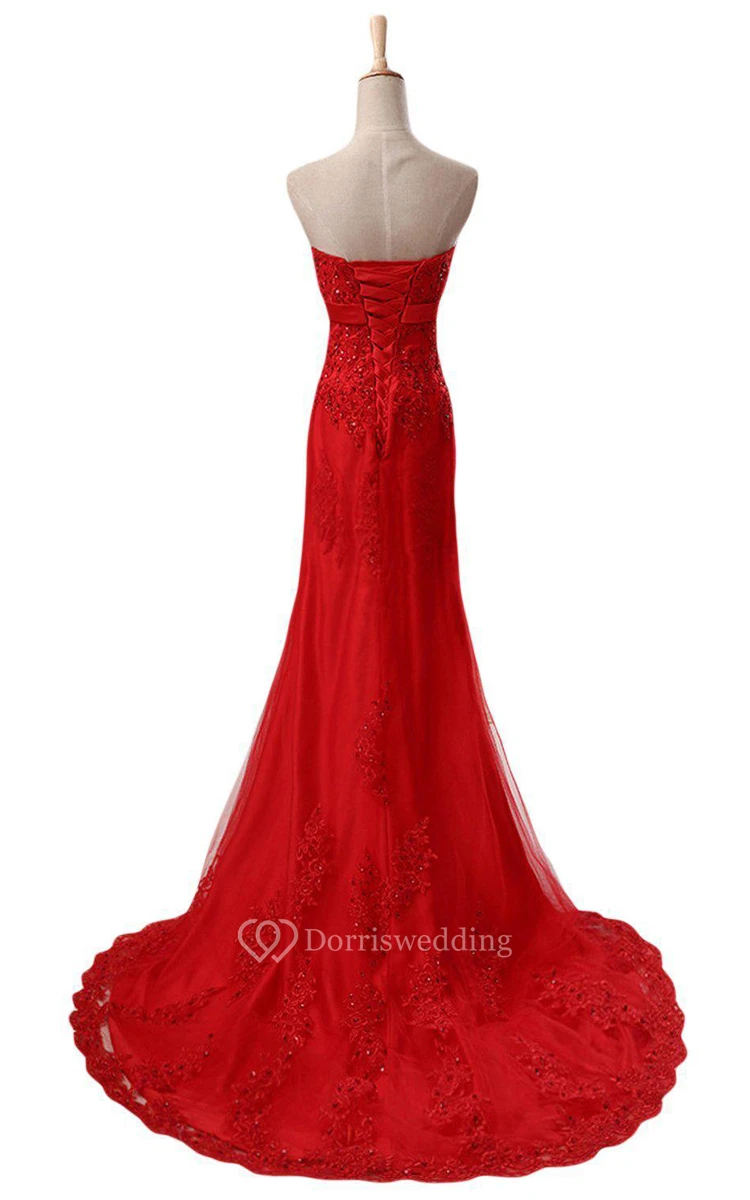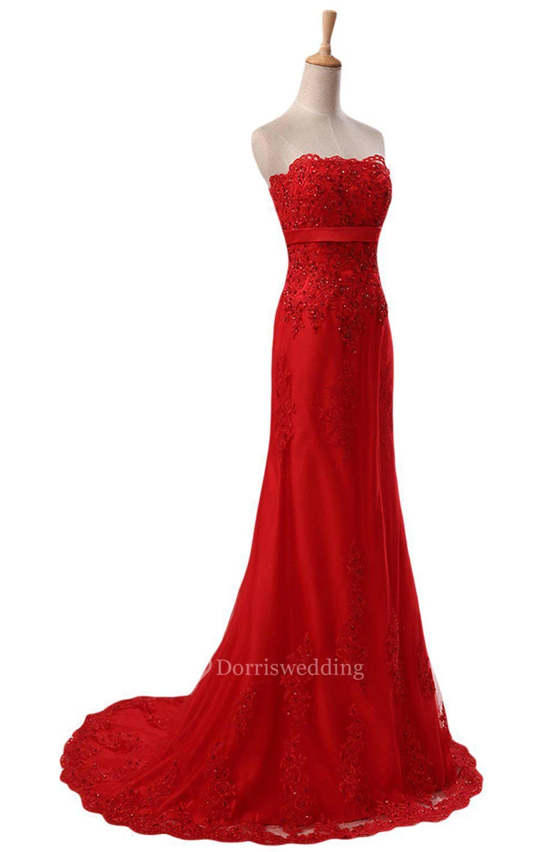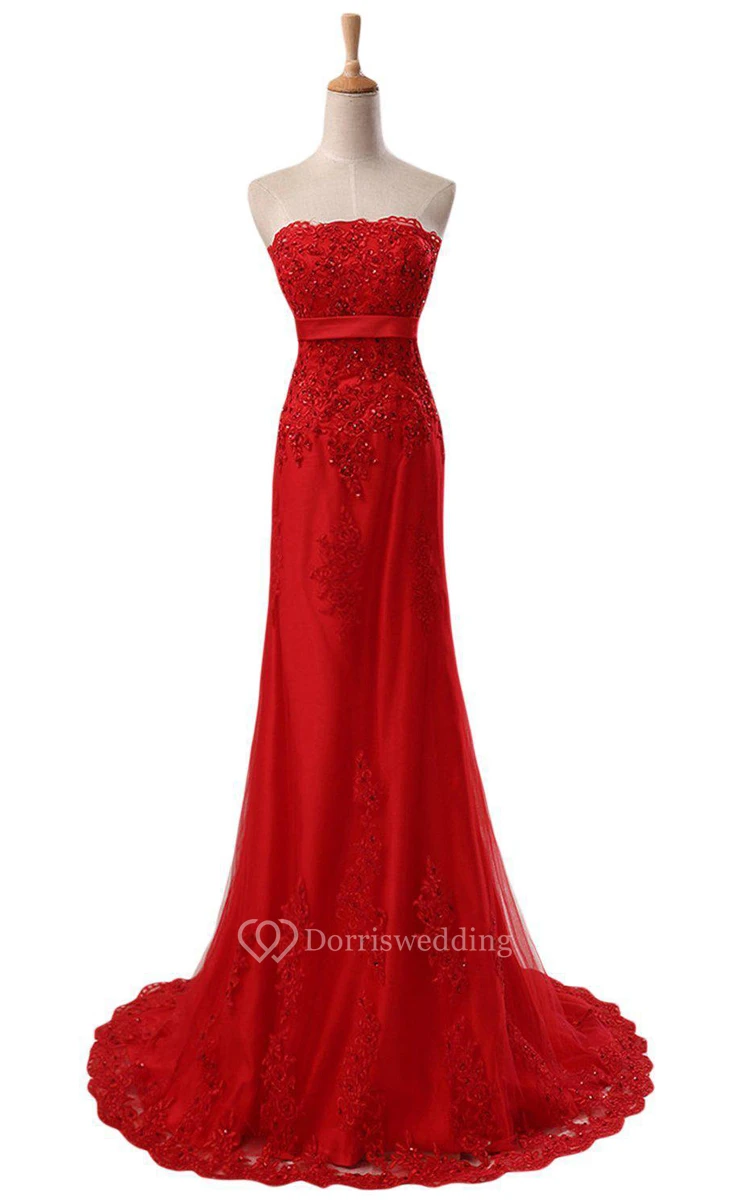 Strapless Dress With Appliques and Beadings