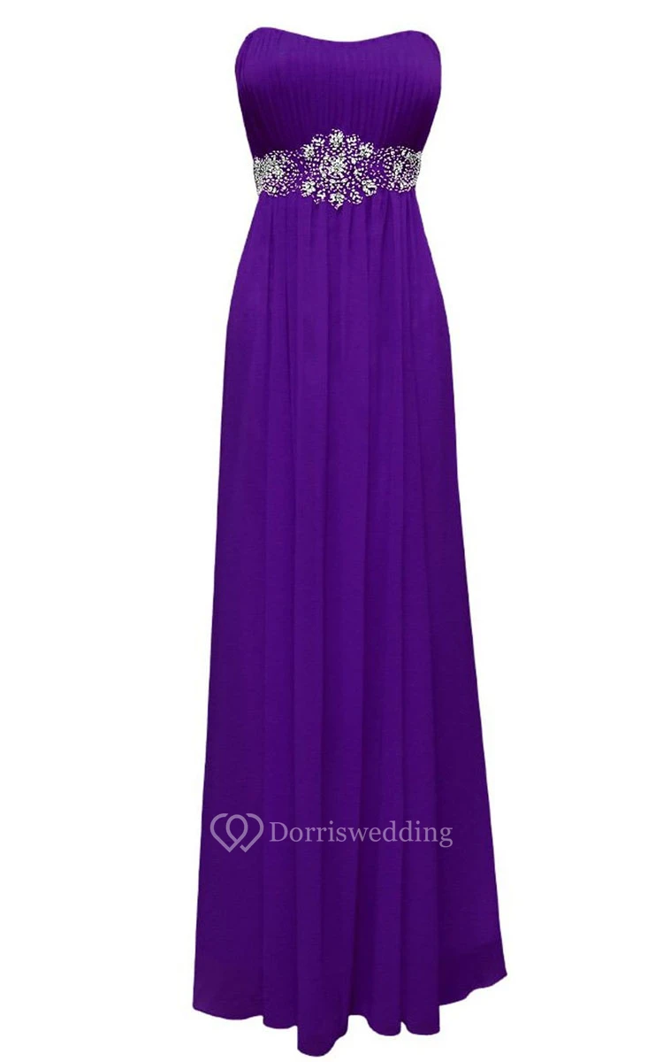 Strapless Empire Chiffon Gown With Beaded Waist