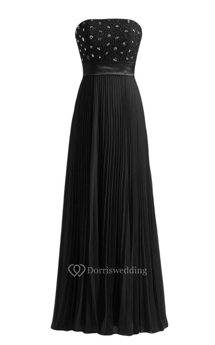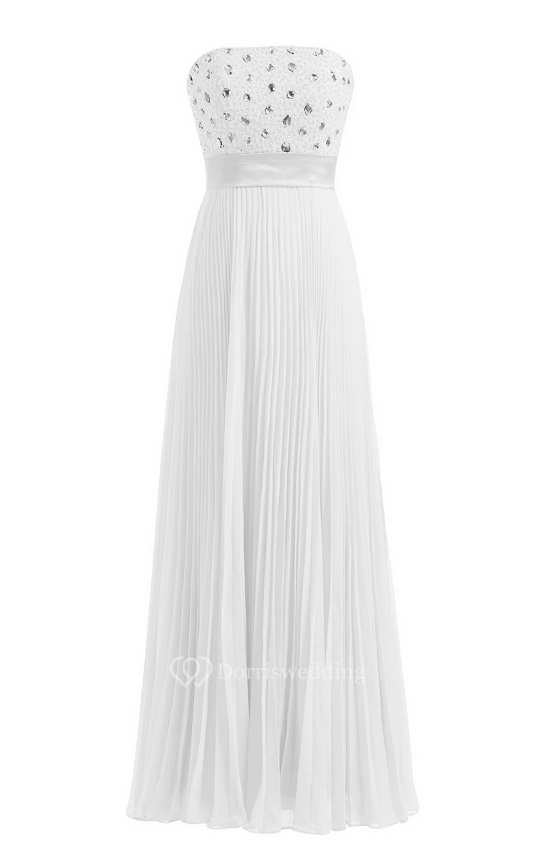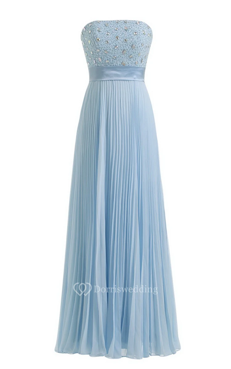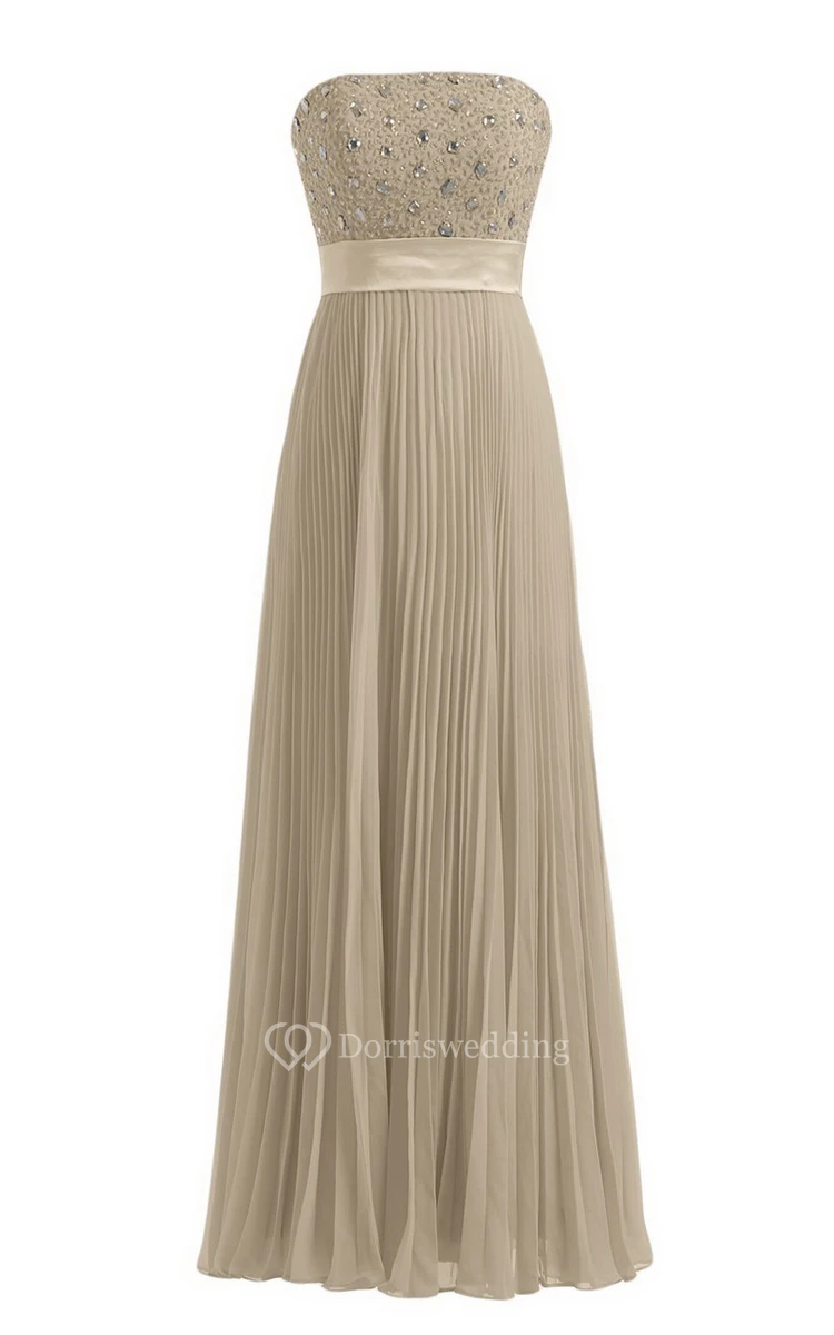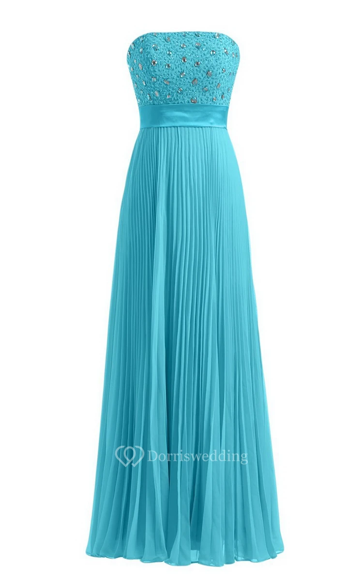 Strapless Empire Long Pleated Dress With Rhinestones