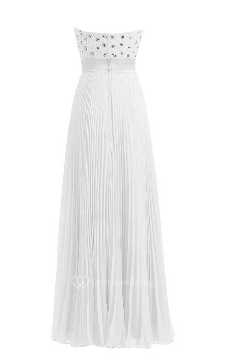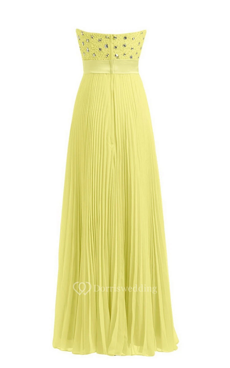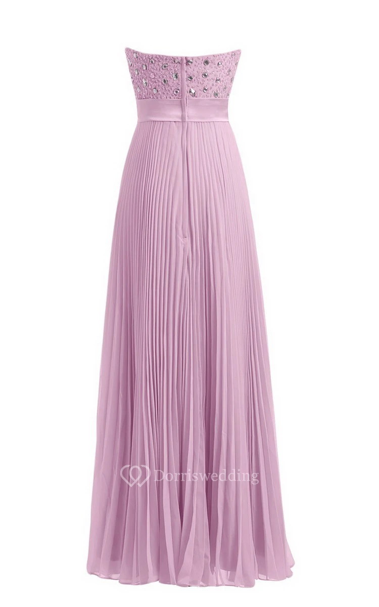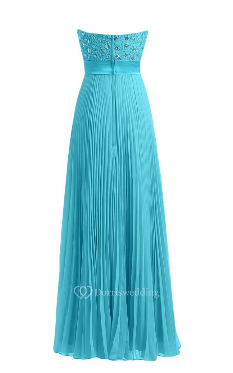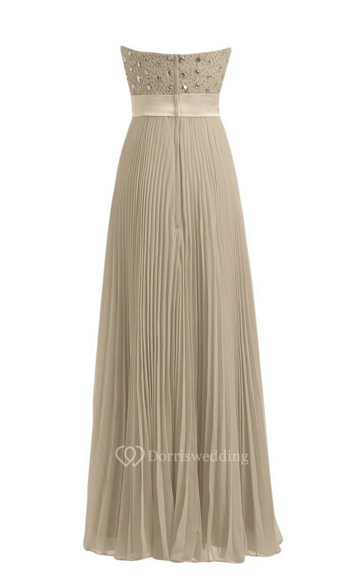 Strapless Empire Long Pleated Dress With Rhinestones