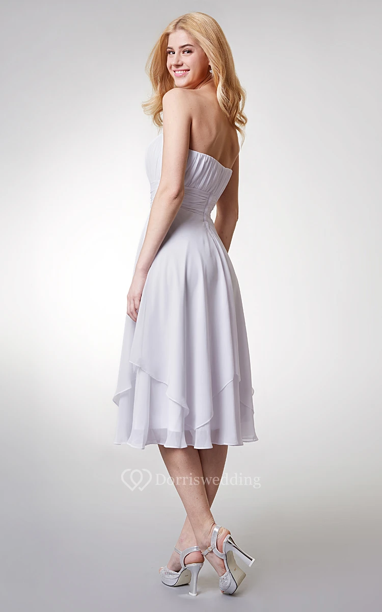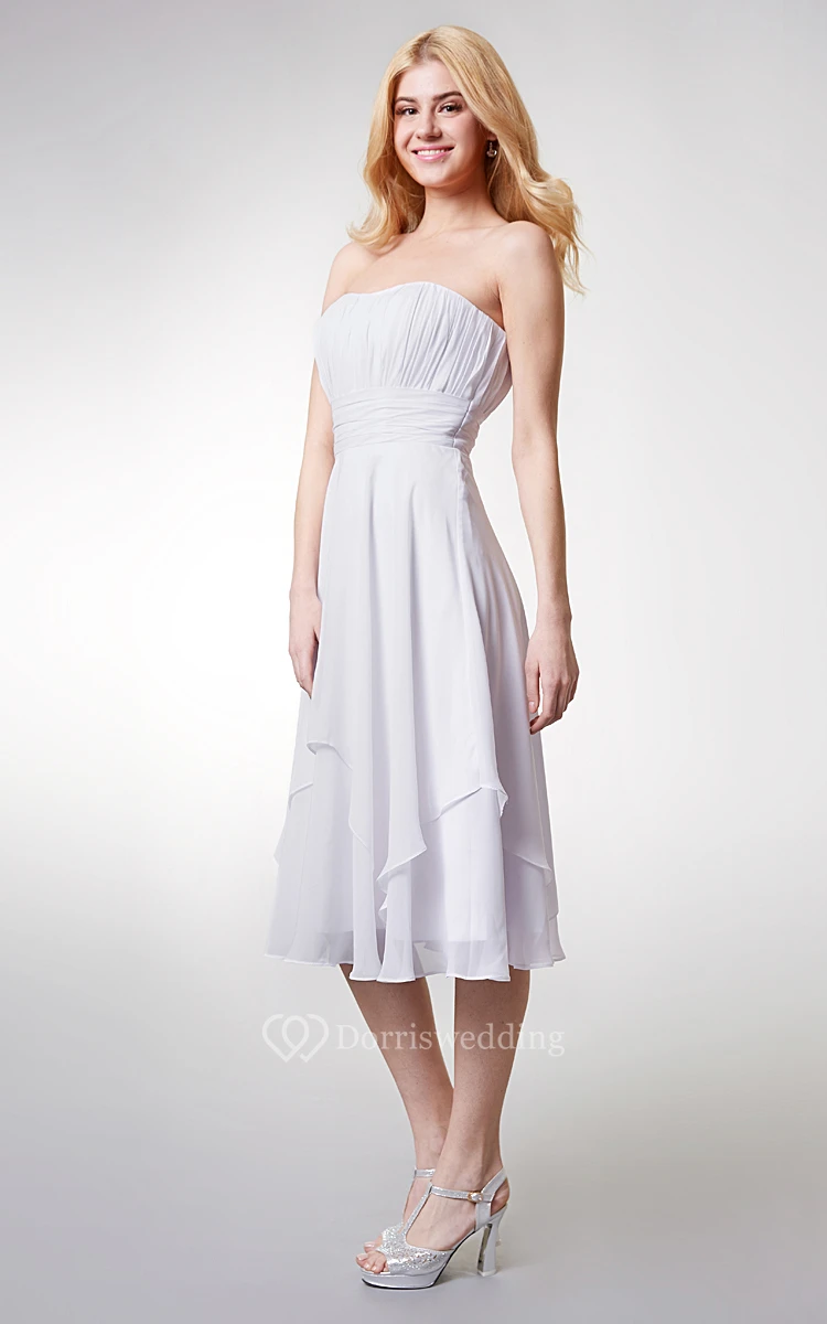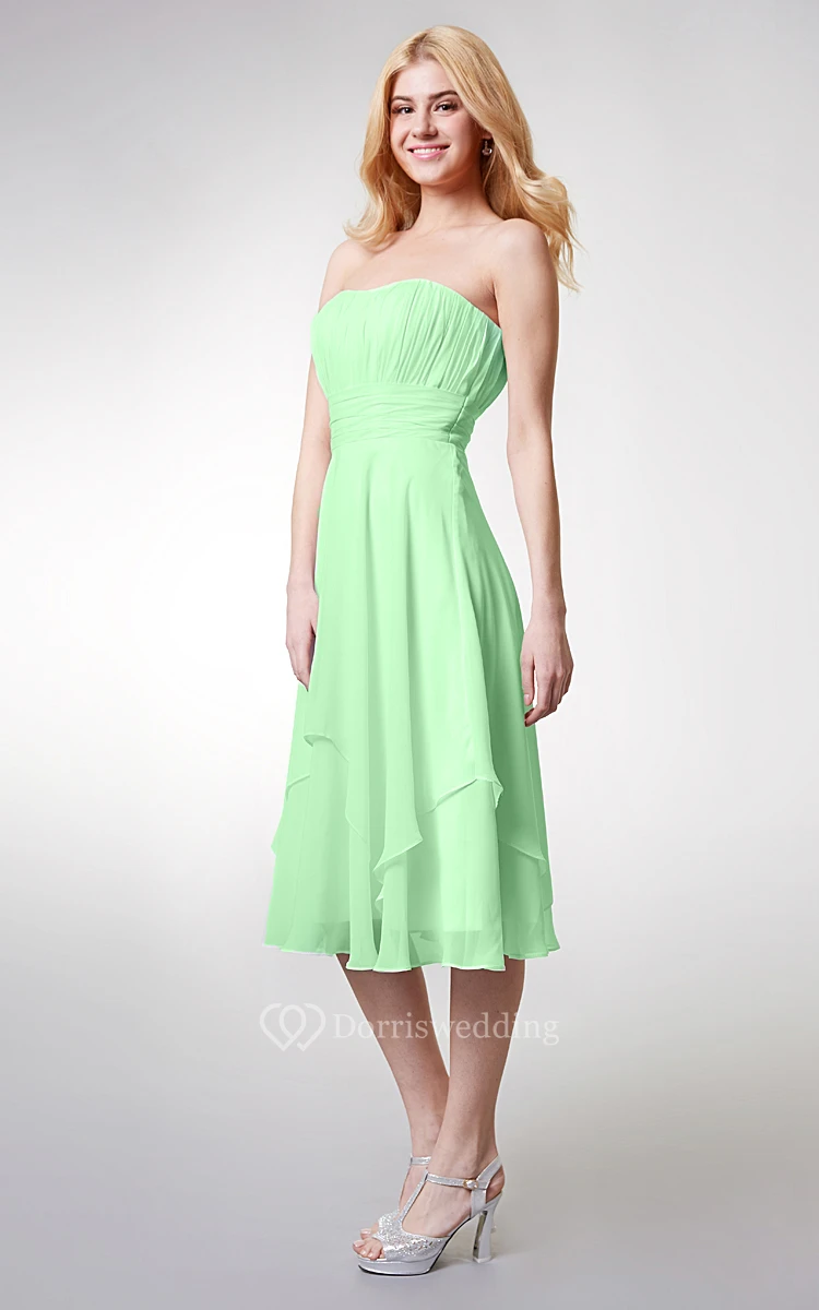 Strapless Empire Tea-length Layered Bridesmaid Dress