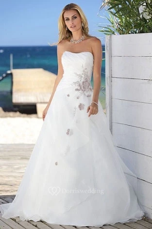 Strapless Floor-Length Ruched Chiffon Wedding Dress With Embroidery