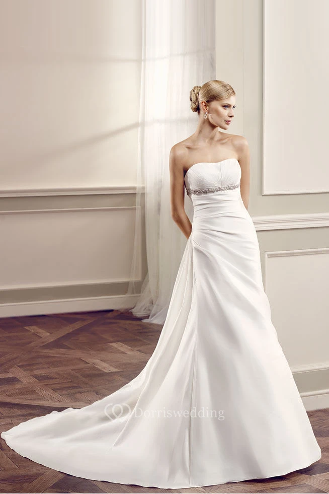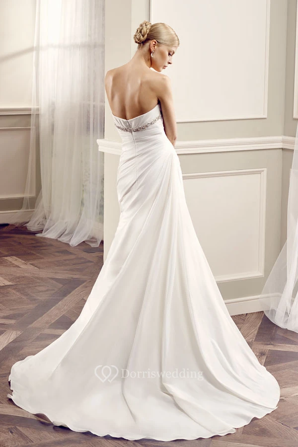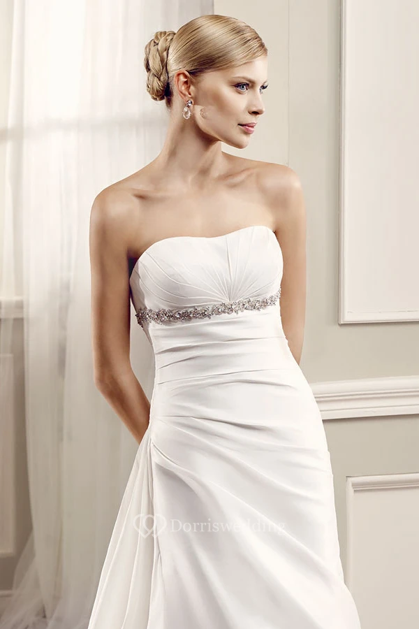 Strapless Floor-Length Side-Draped Chiffon Wedding Dress With Court Train And V Back