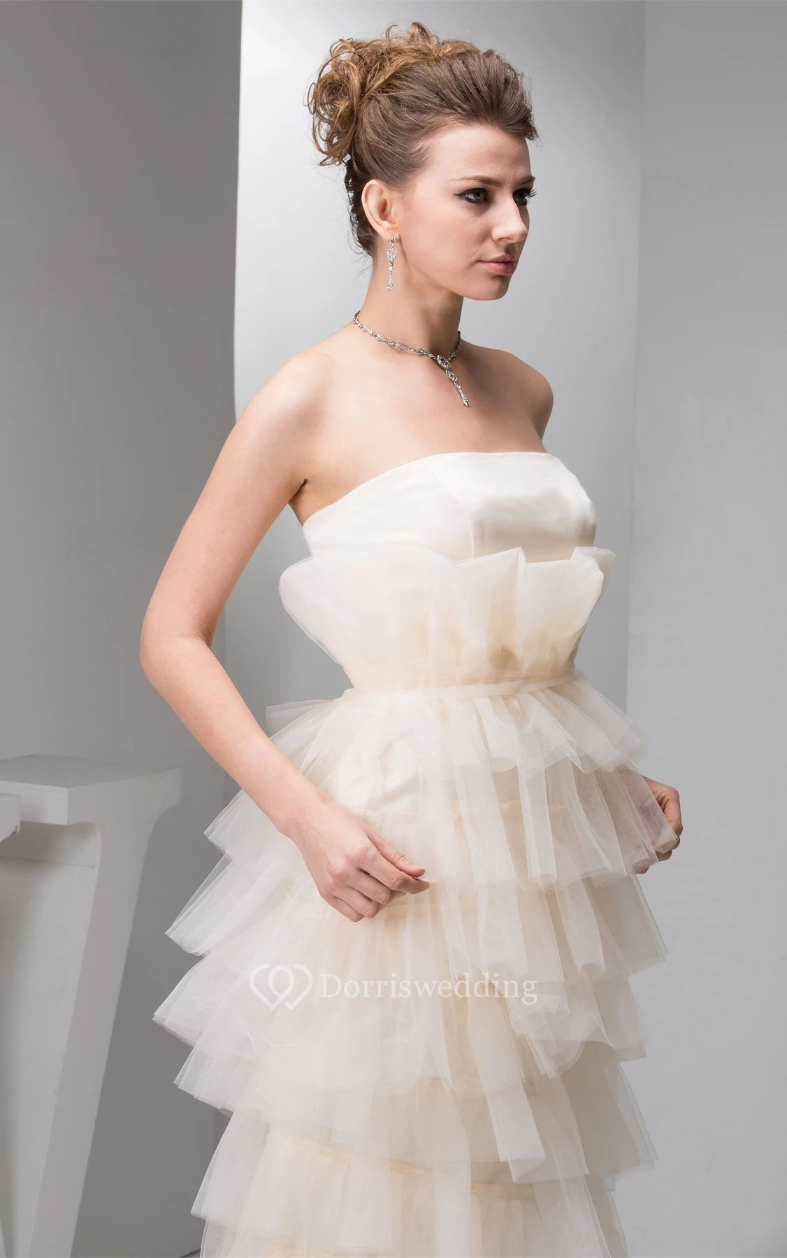 Strapless Floor-Length Tulle Pleats and Dress With Tiers