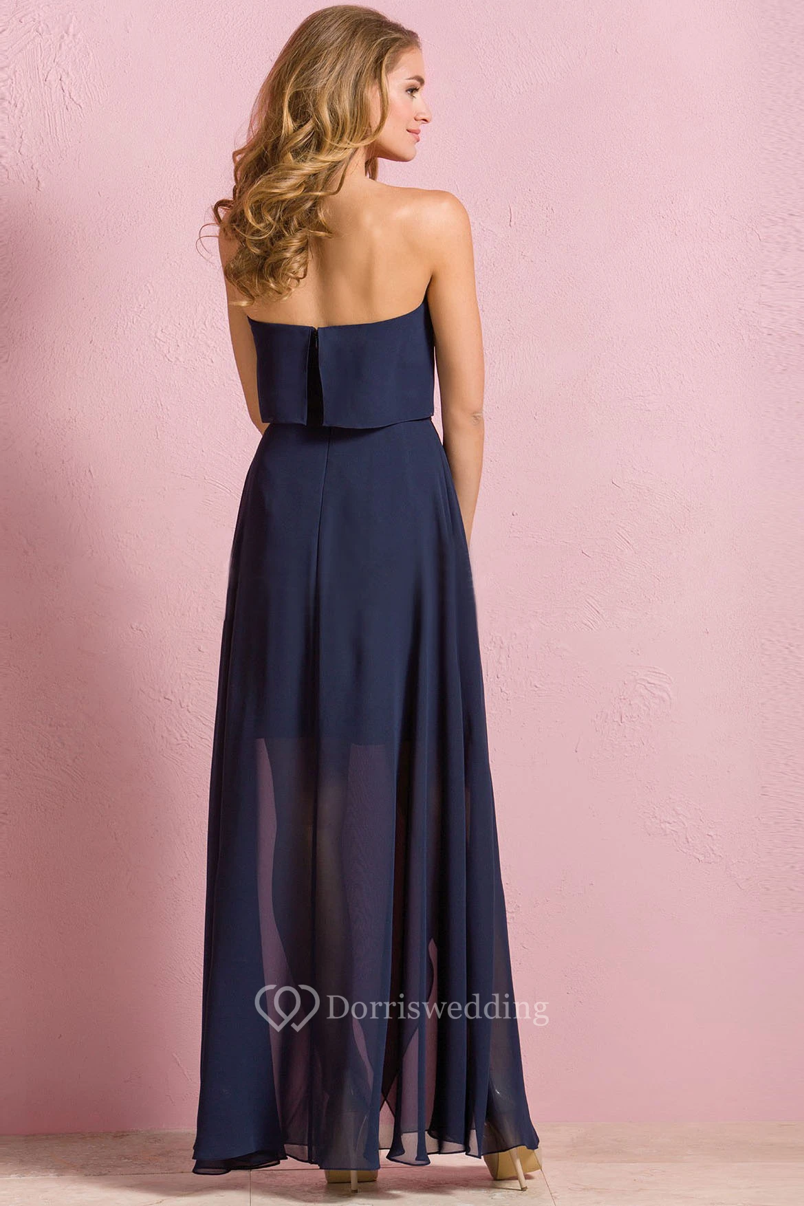 Strapless Flowy Long Chiffon Bridesmaid Dress With Pleats And Illusion Style
