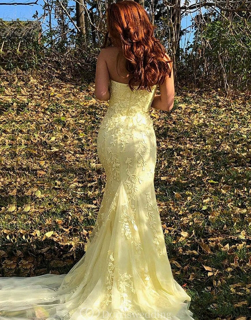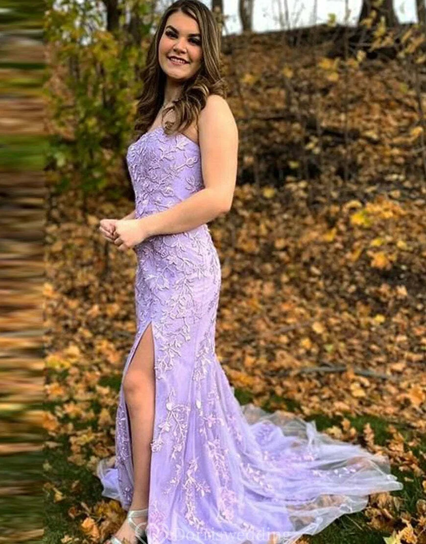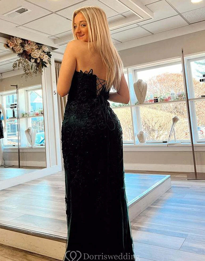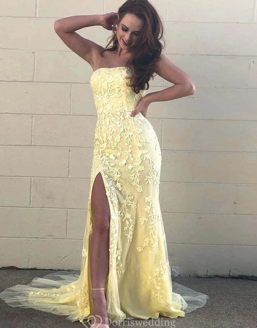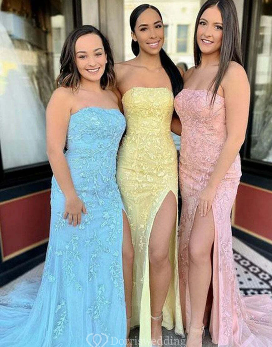 Strapless Front Split Lace Applique Elegant Tulle Dress