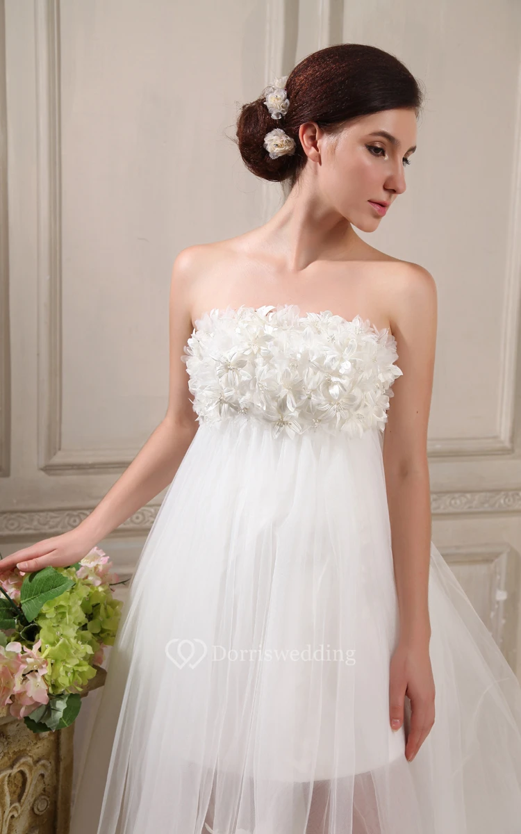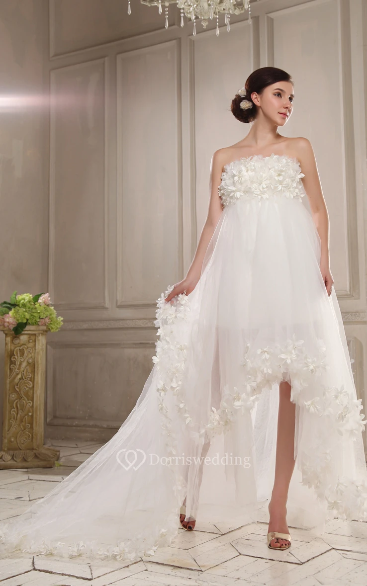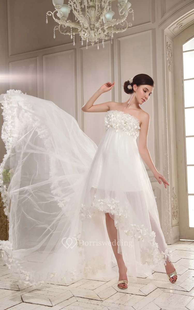 Strapless High-Low Pleating First Communion Dress With Flowers