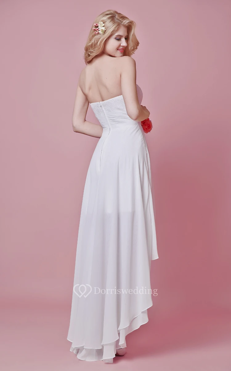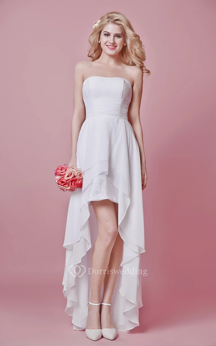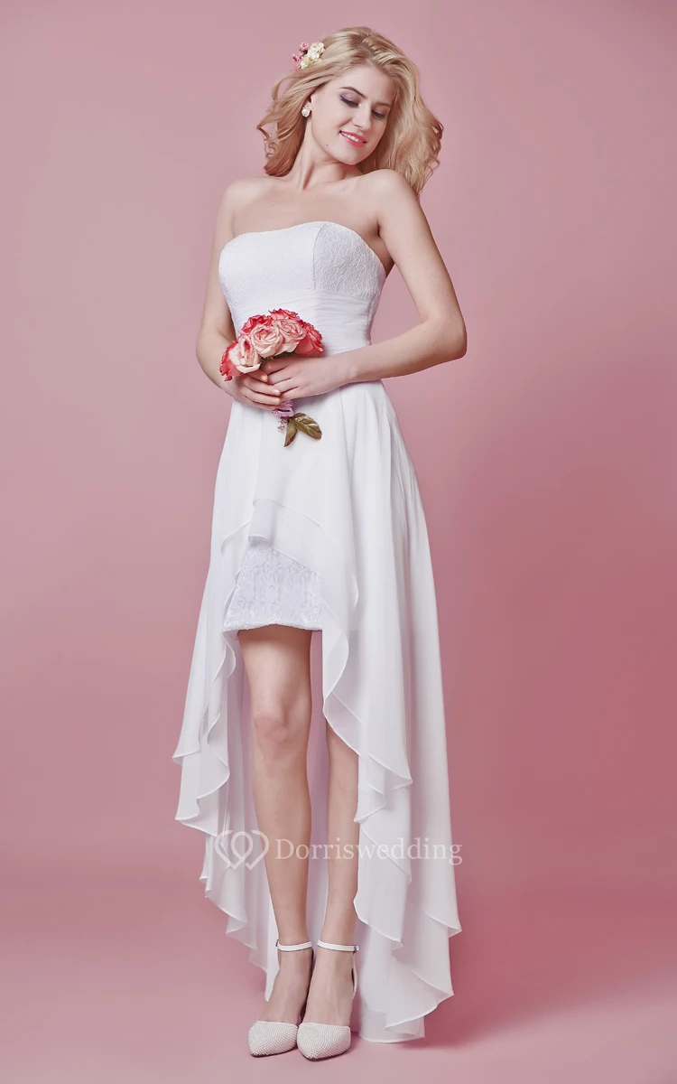 Strapless Lace and Chiffon High-low Dress With Cascading Ruffles