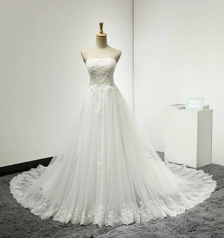 Strapless Lace and Tulle Dress With Lace-Up Back
