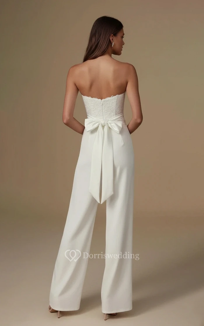 Strapless Lace Bow Wide Leg Wedding Jumpsuit
