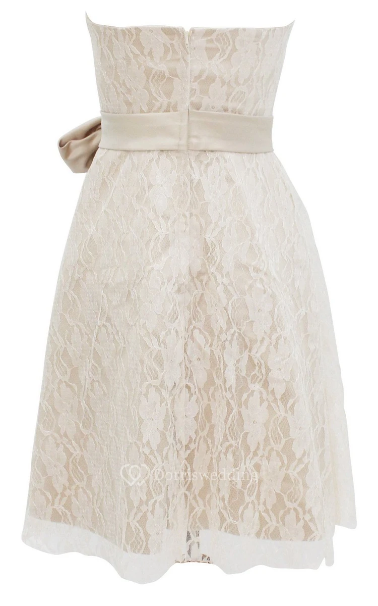 Strapless Lace Bridal Dress With Bow