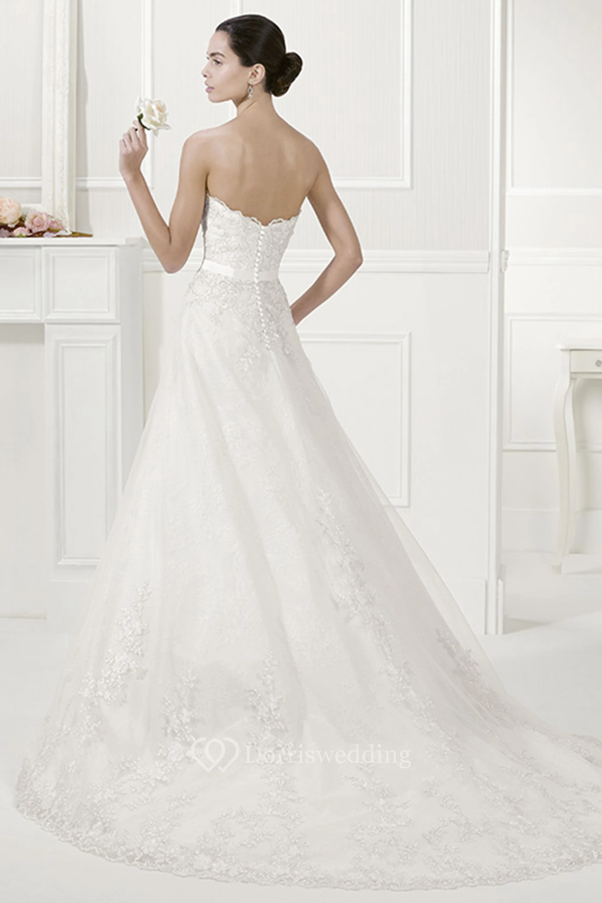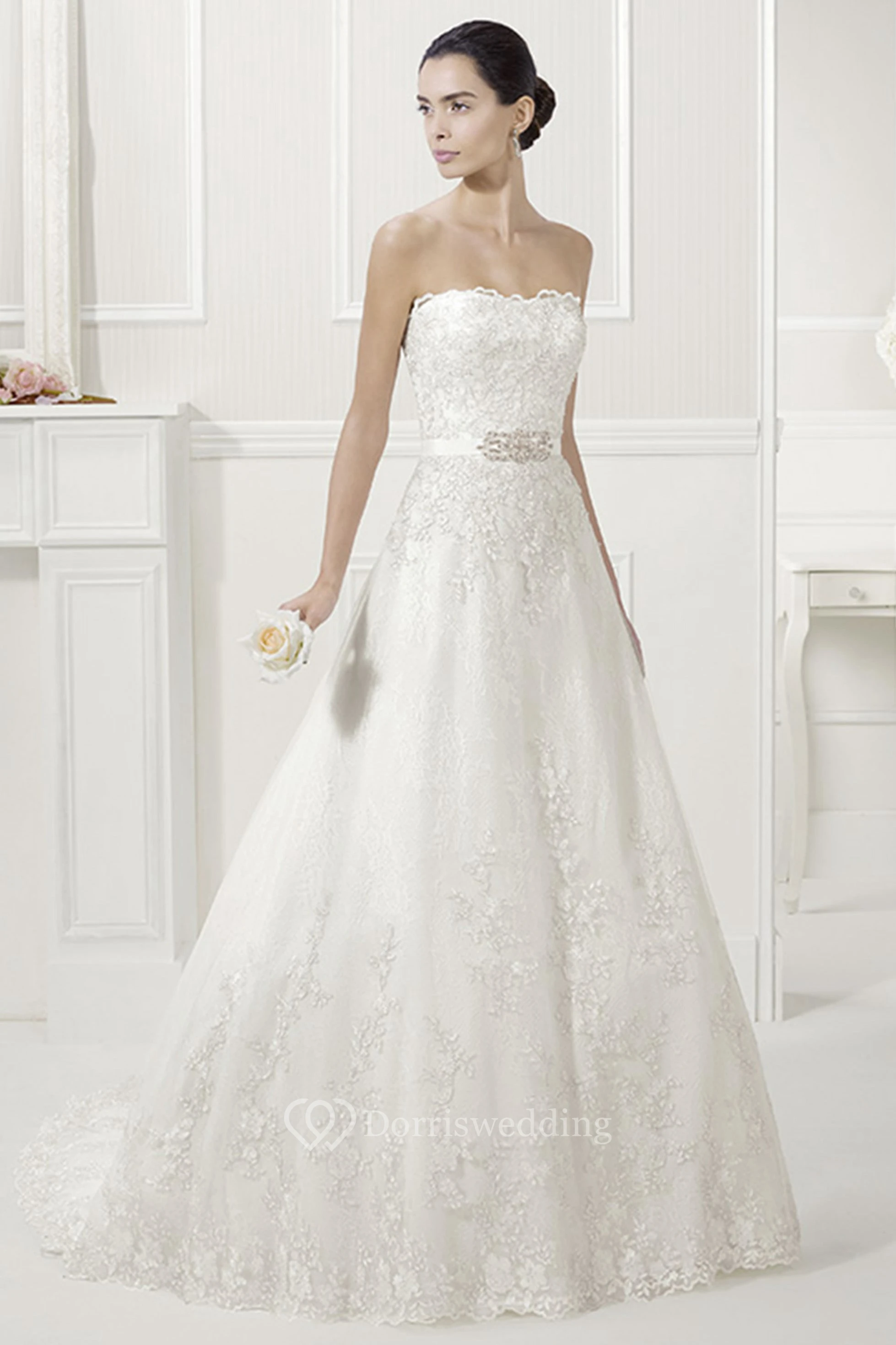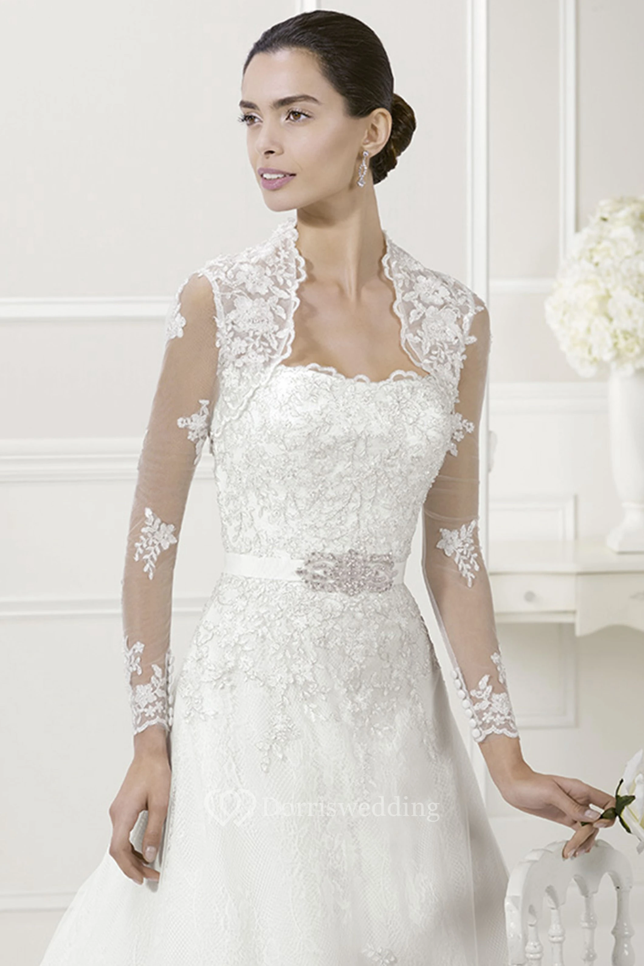 Strapless Lace Bridal Gown With Removable Long-Sleeve Jacket