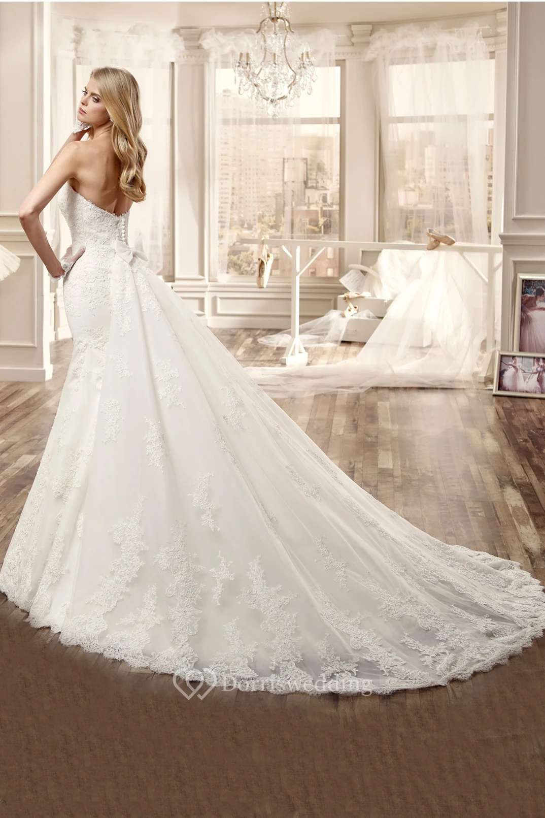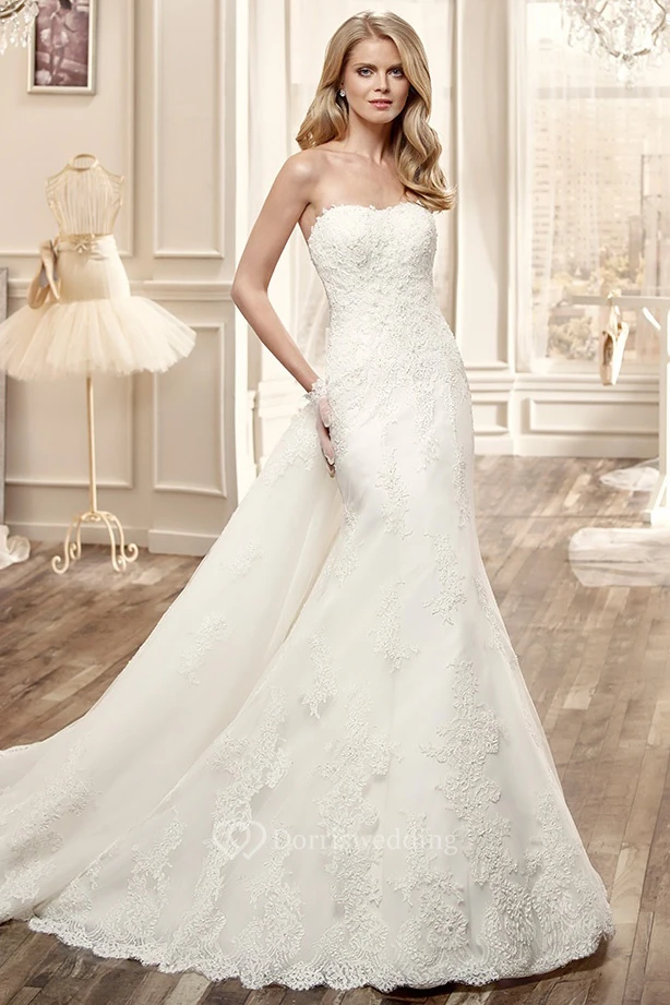 Strapless Lace Long Wedding Dress With Low Back And Chapel Train