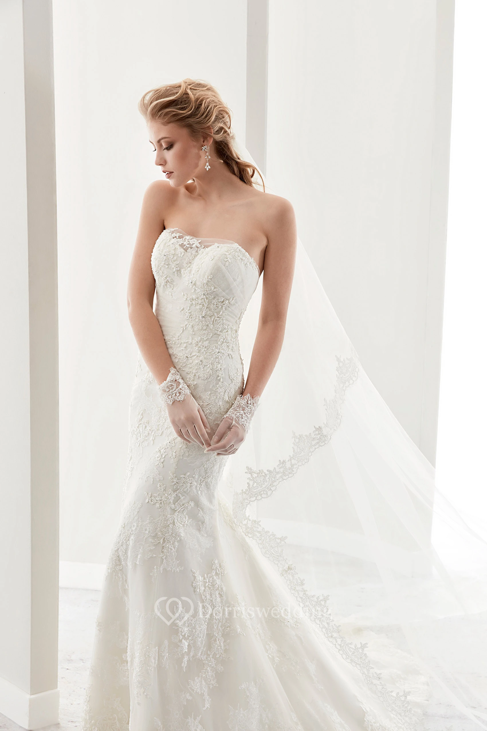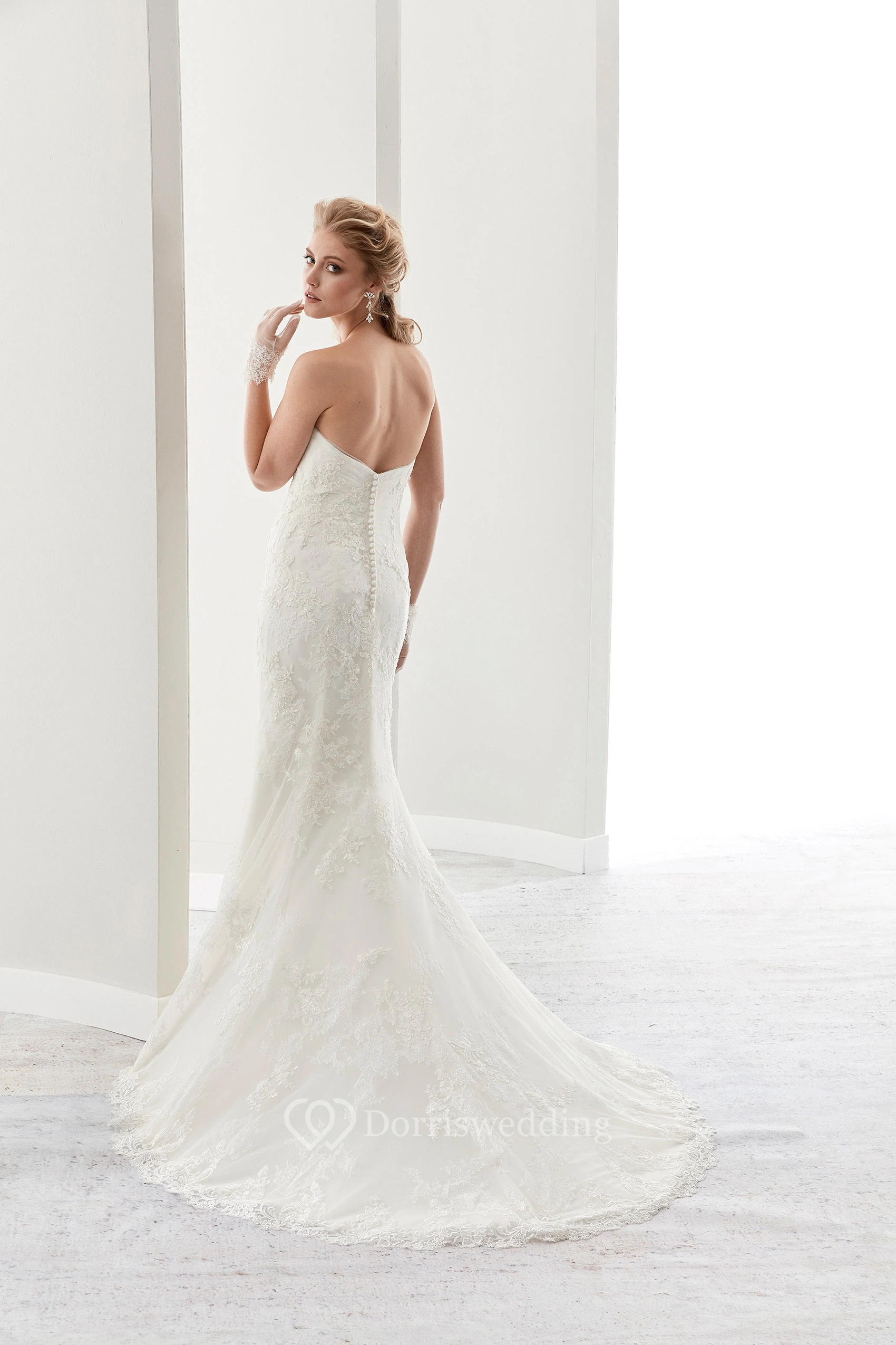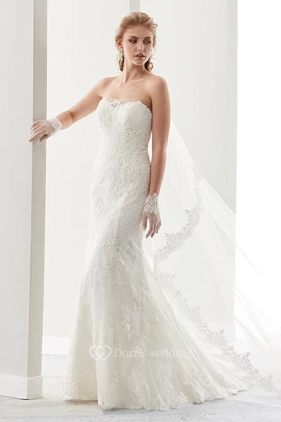 Strapless Lace Sheath Gown With Brush Train And Half Back