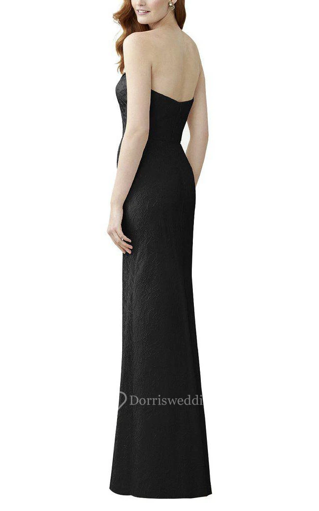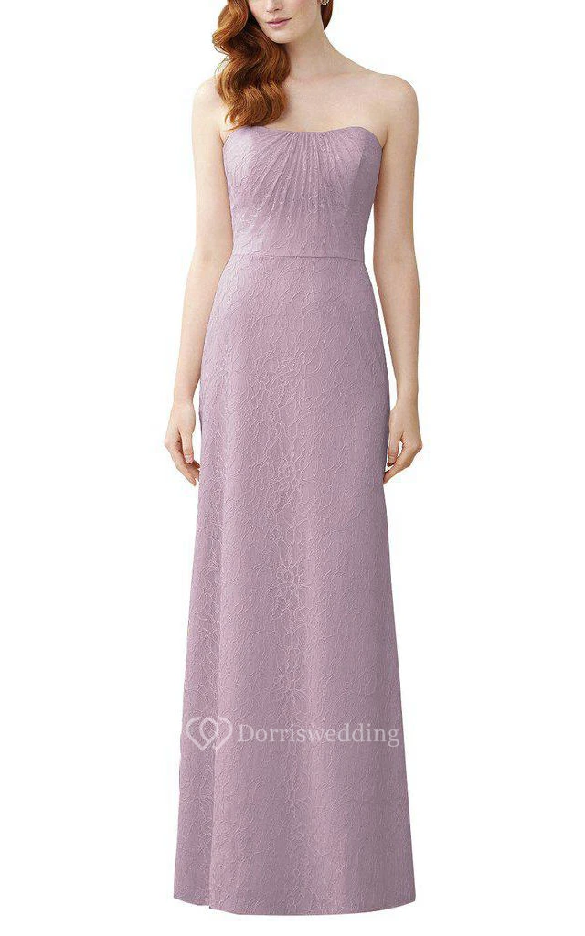 Strapless Lace Sheath Ruched Long Bridesmaid Dress
