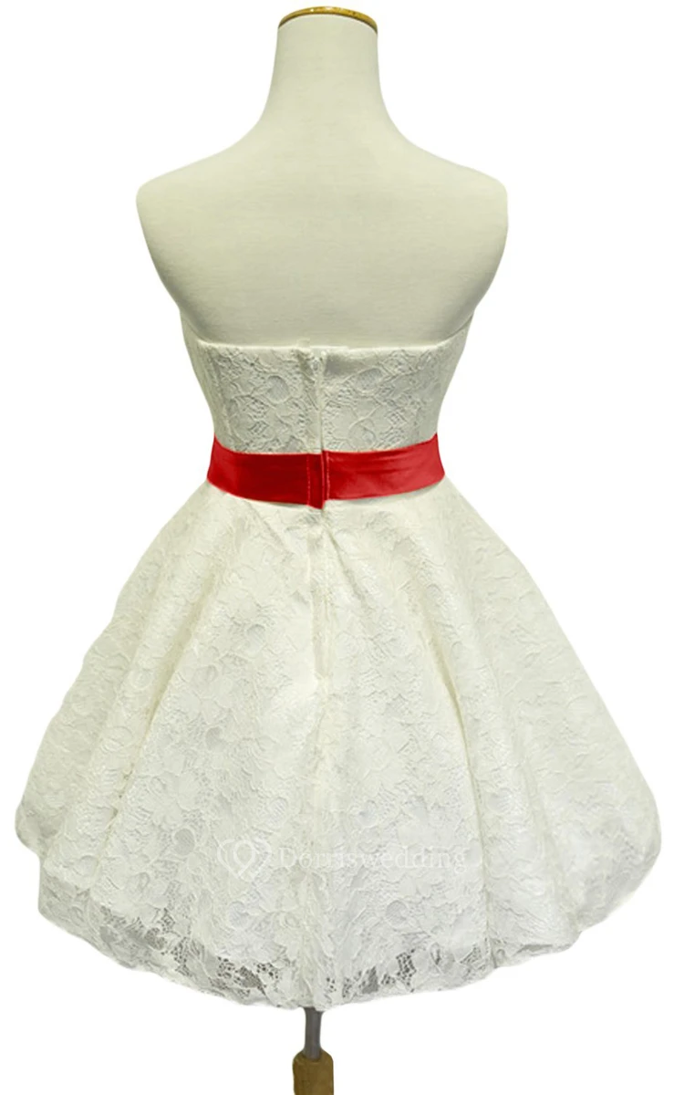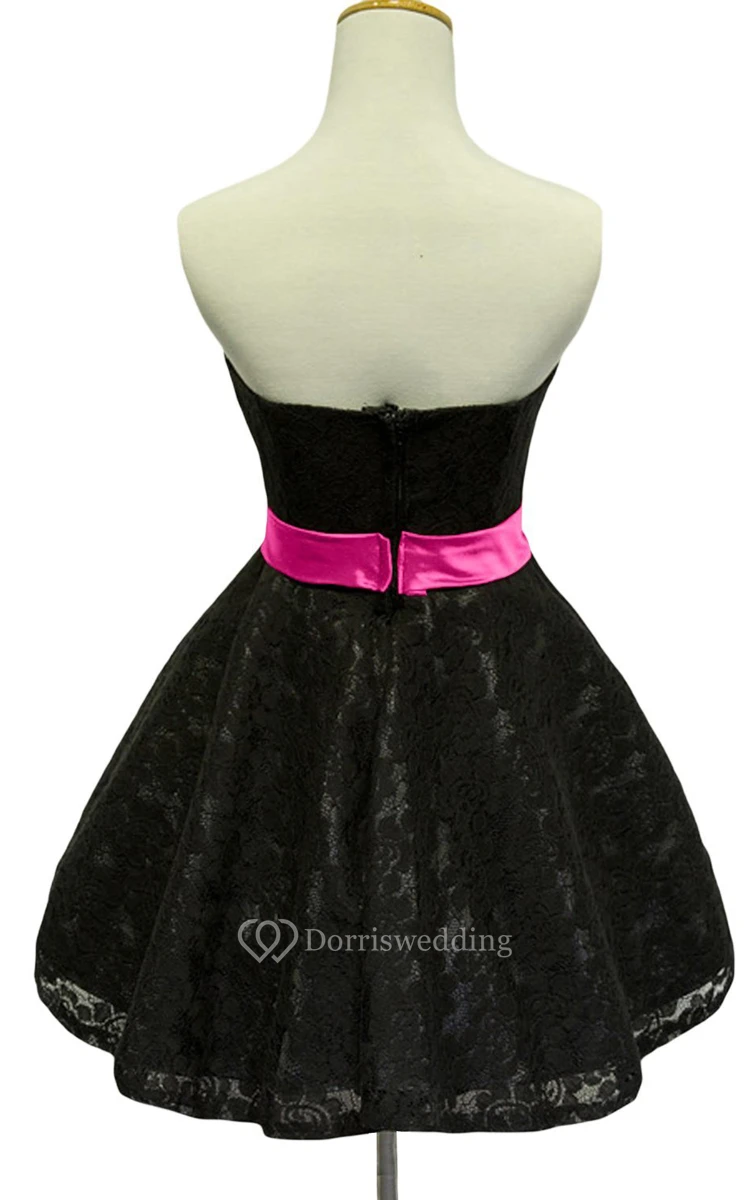 Strapless Lace Short Dress With Satin Trim and Belt
