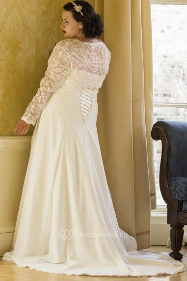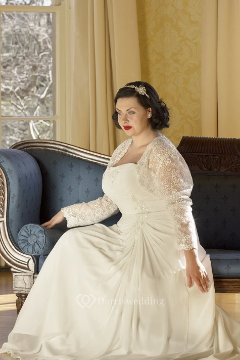 Strapless Lace-Up Bridal Gown With Removable Long-Sleeve Lace Jacket