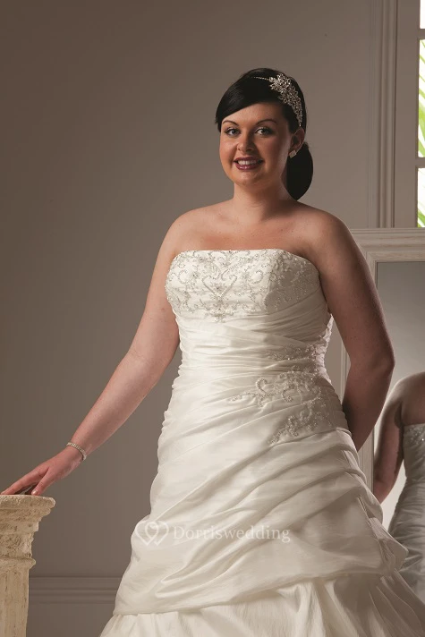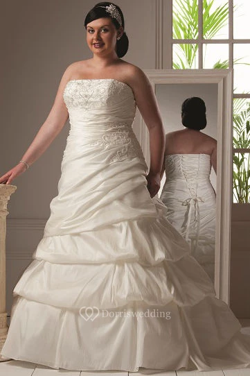 Strapless Lace-Up Taffeta Bridal Ball Gown With Ruffles