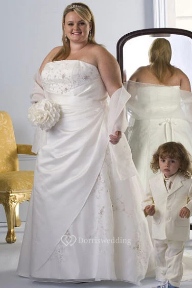 Strapless Lace-Up Taffeta Bridal Gown With Organza Shawl