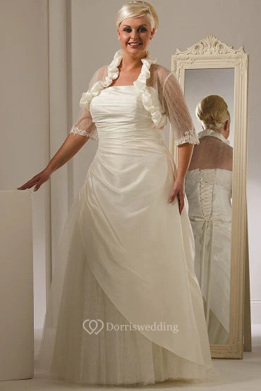 Strapless Lace Up Taffeta Bridal Gown With Tulle Skirt And Jacket