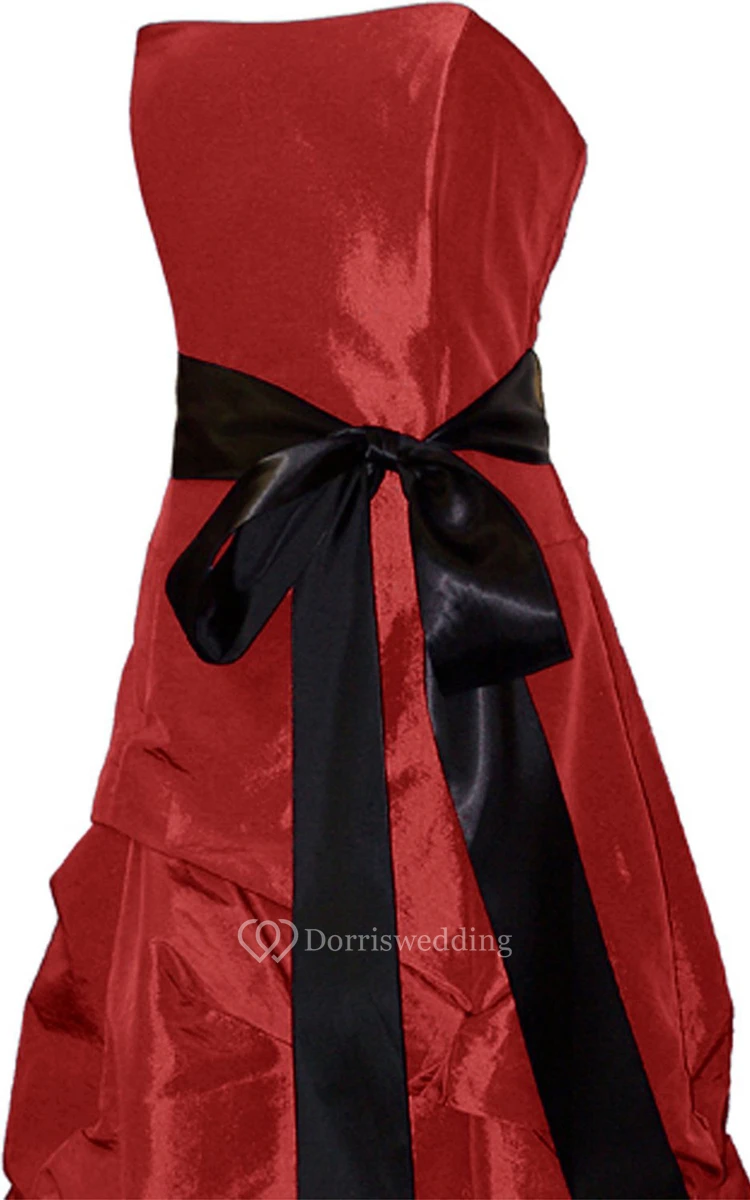 Strapless Layered Ruffle Dress With Satin Bow