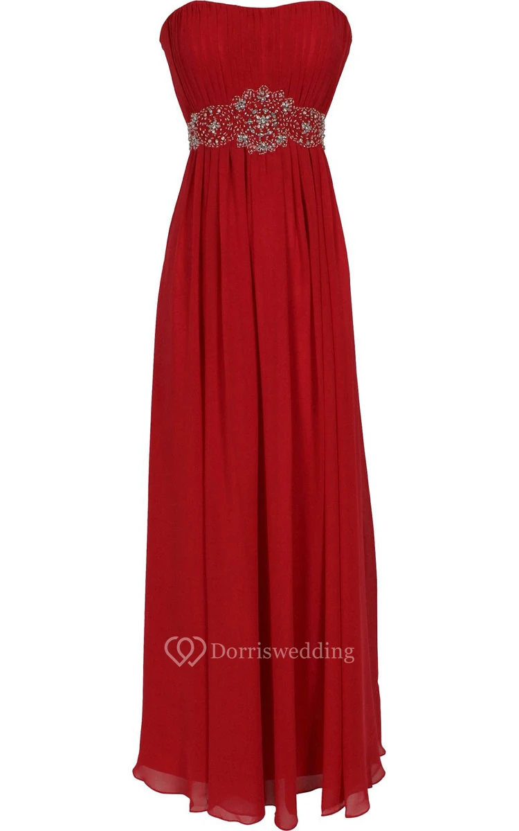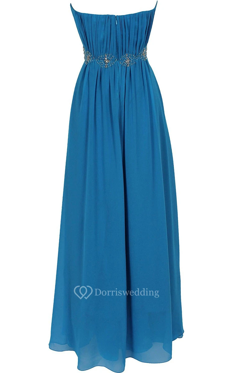 Strapless Long Chiffon Dress With Beaded Waist