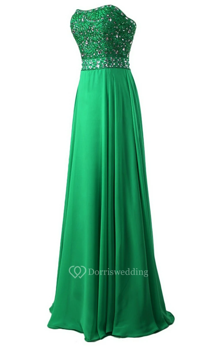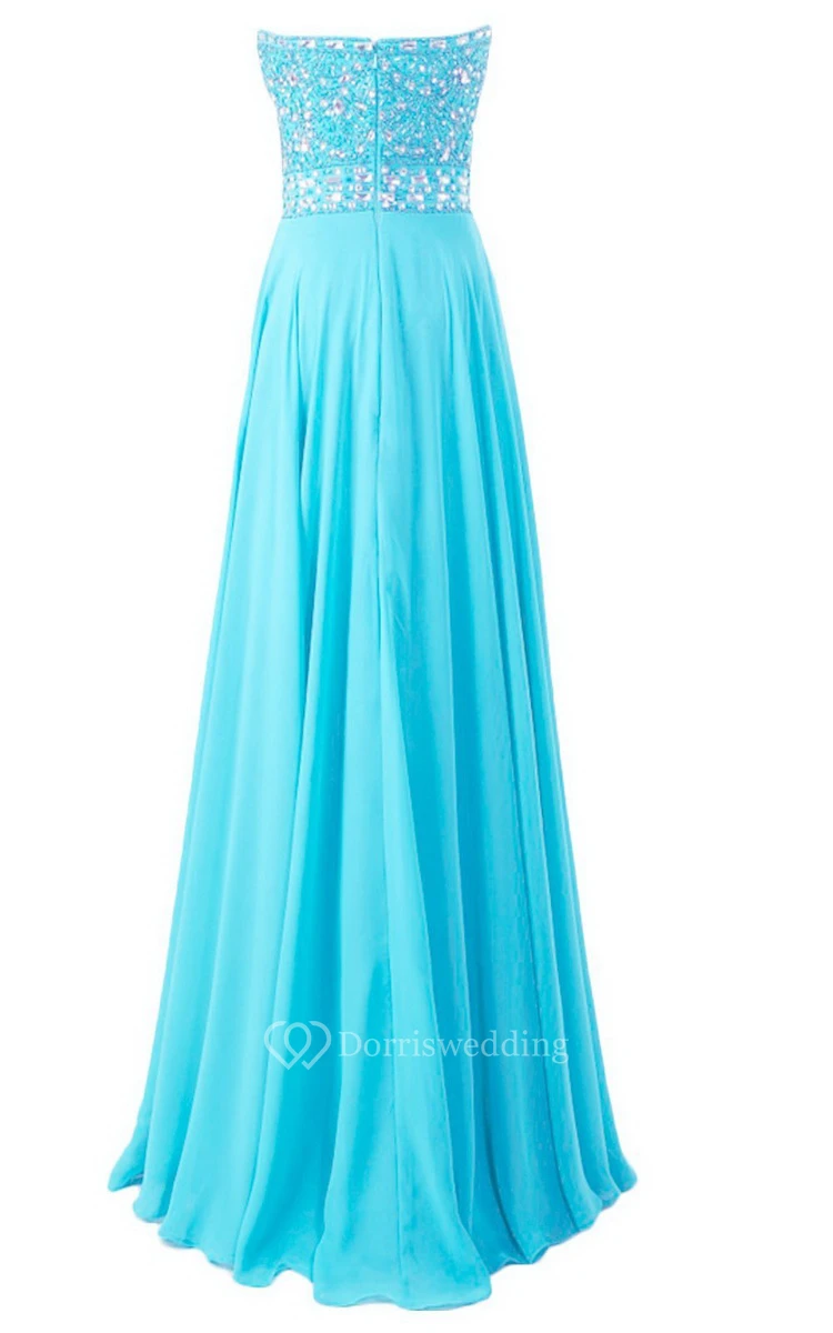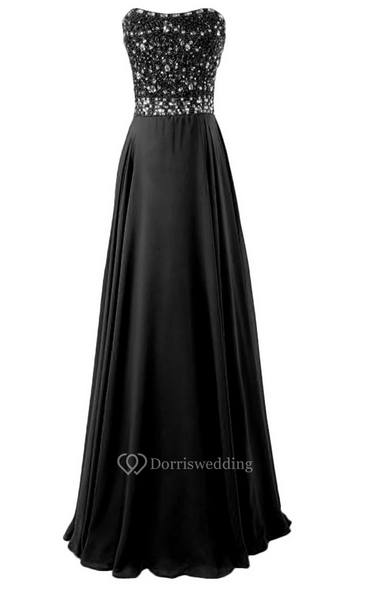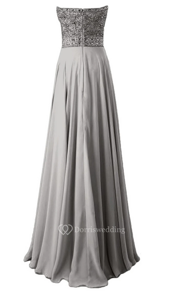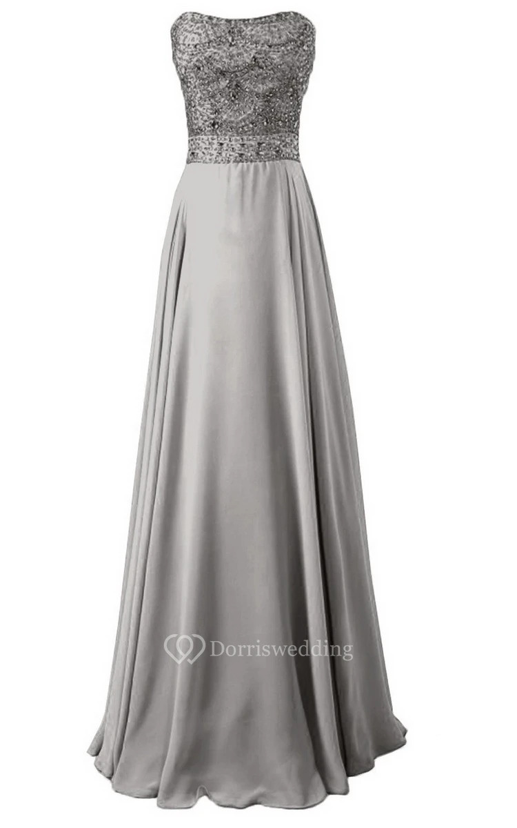 Strapless Long Satin Dress With Beaded Bodice