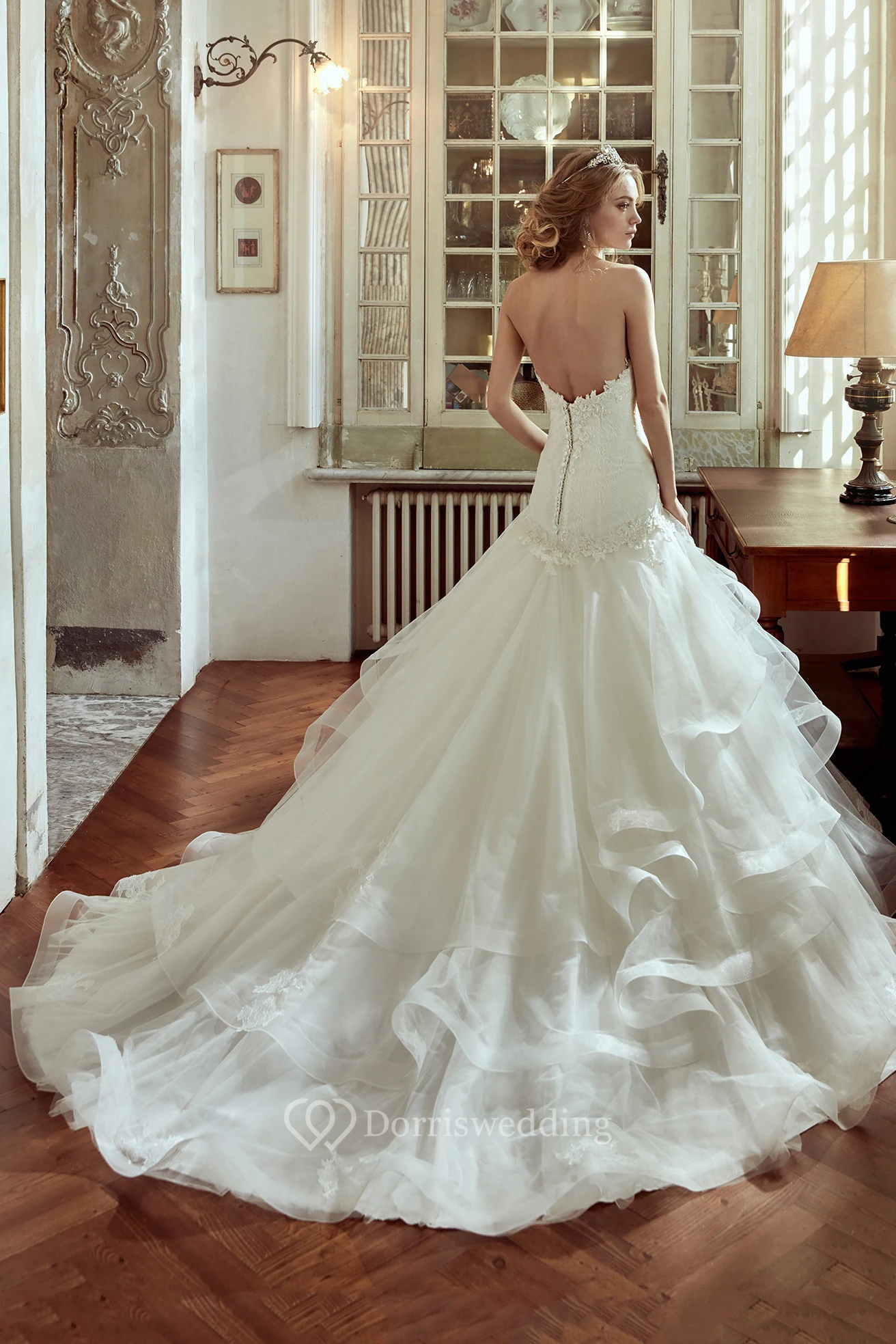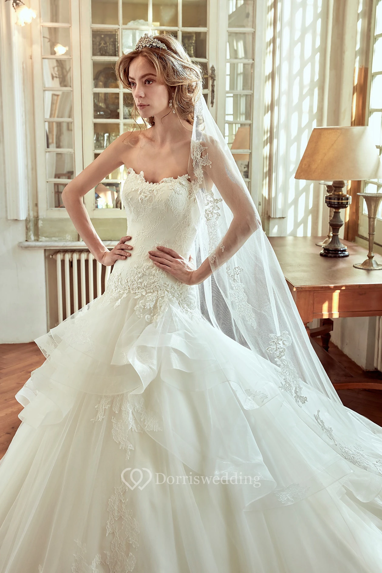 Strapless Long Wedding Dress with Lace Corset and Multi-Tiers Ruffles