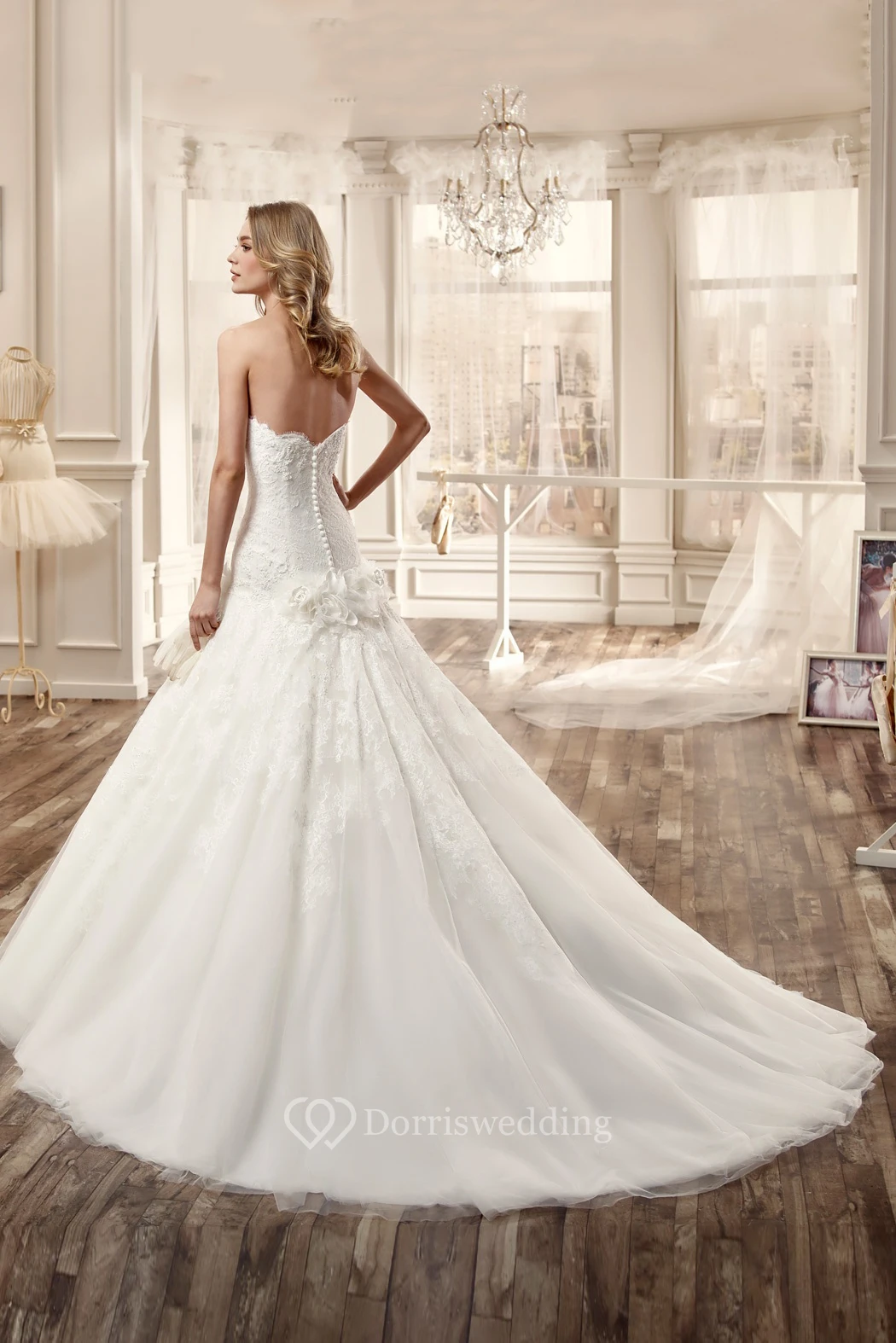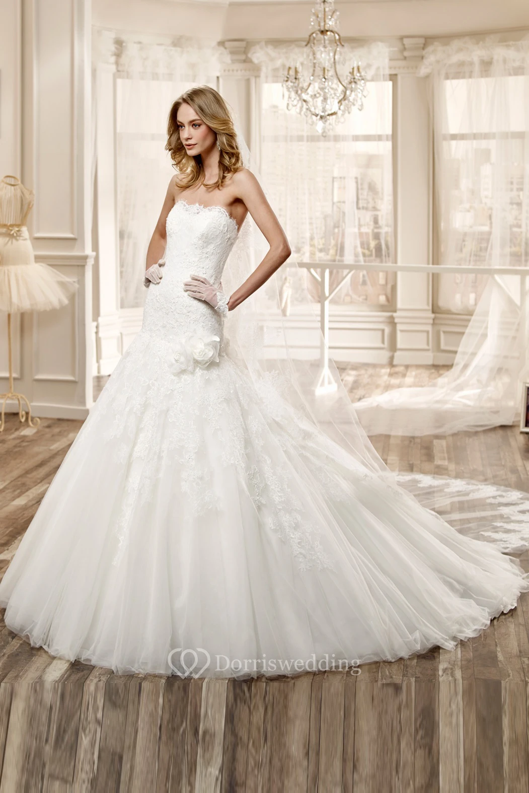 Strapless Long Wedding Dress With Pleated Skirt And Back Bow